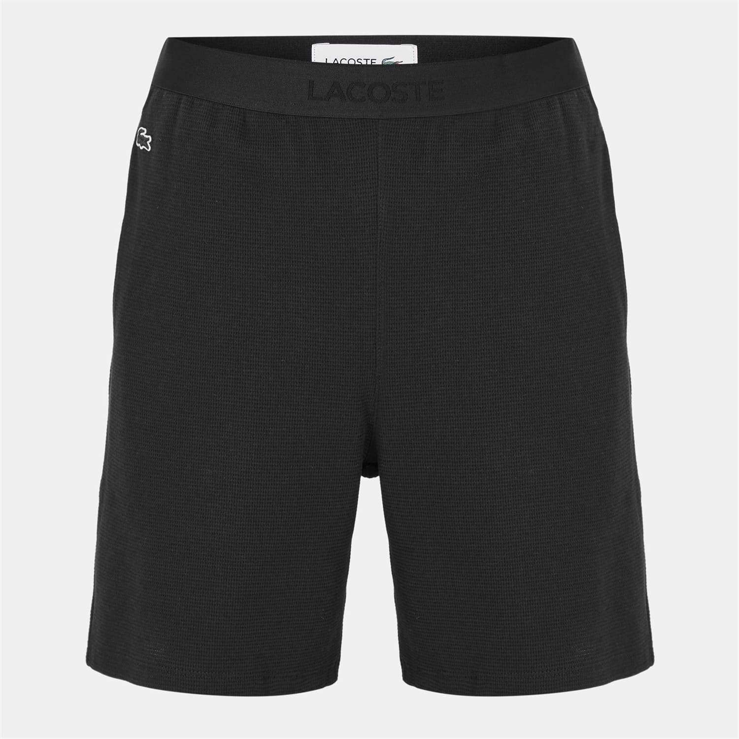 Lacoste waffle-patterned bermuda shorts are perfect for casual and loungewear collections. Featuring an elasticated waistband for comfort, these shorts are adorned with a subtle logo embellishment, adding a touch of brand identity to your outfit. -