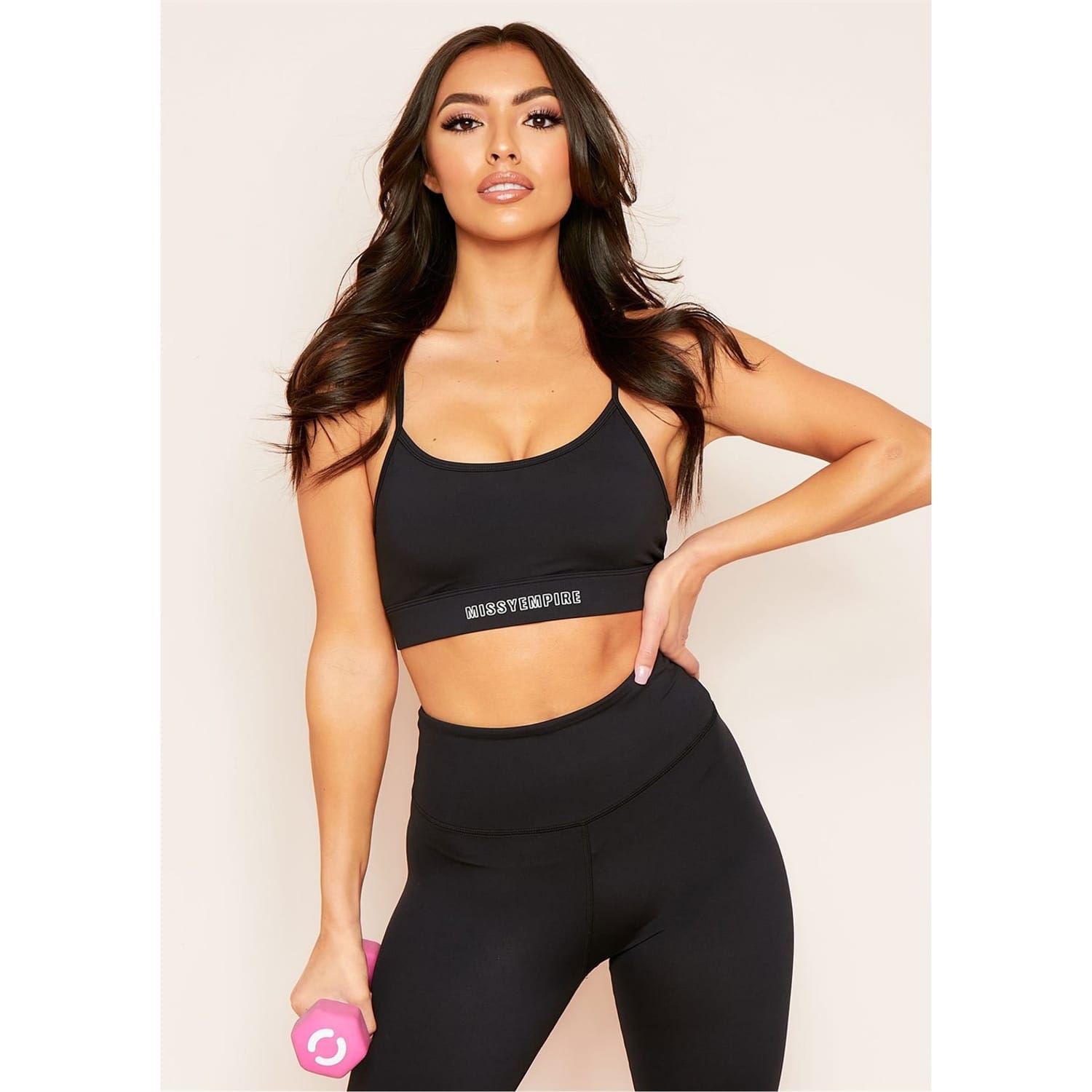 Amp up your gym wear look with this must have sports bra. Our Missy Empire Strappy Gym Bralet features a grey fabric with a Missy Empire slogan, padded, and criss cross strappy shoulder straps, what's not to love?! -