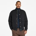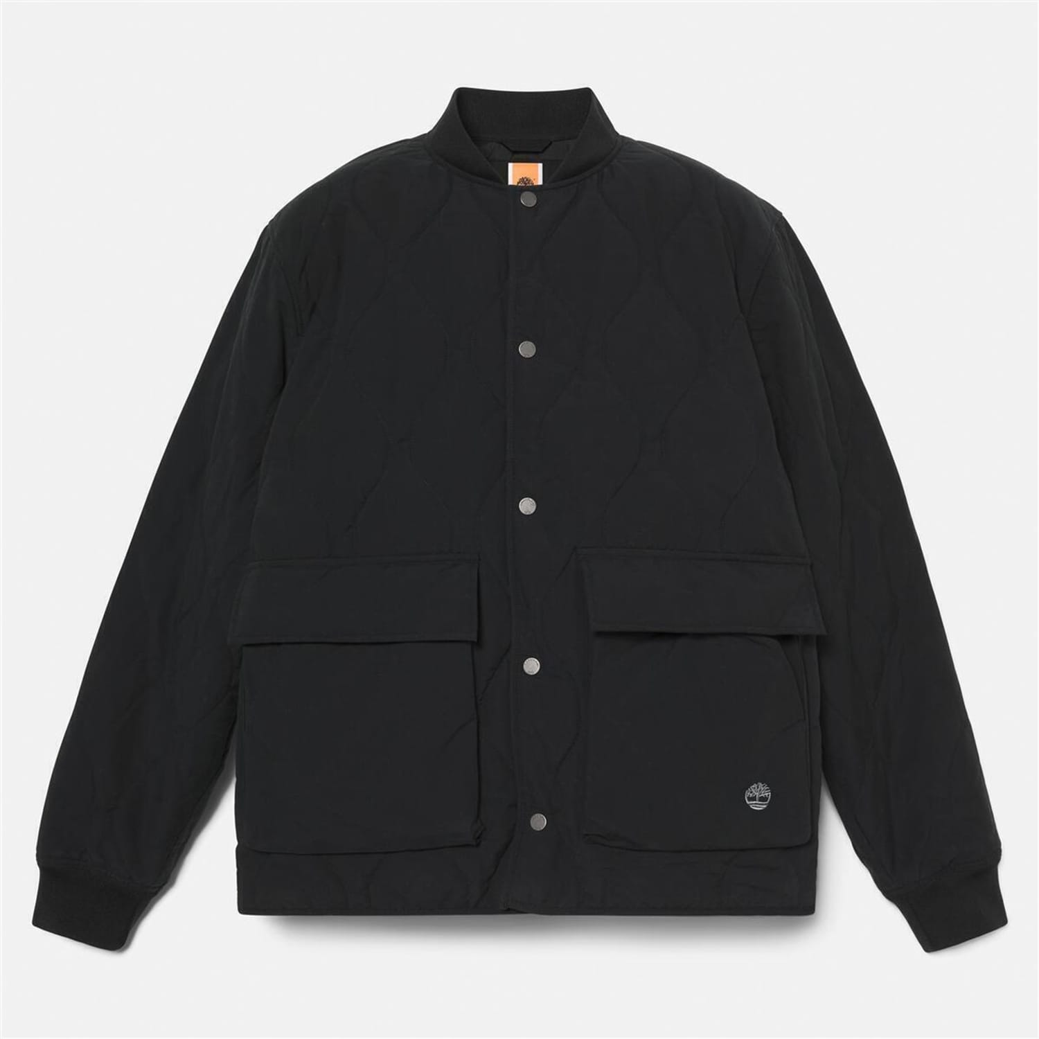 This Timberland puffer jacket features a quilted design with a mock neck and ribbed cuffs. It has a regular fit and a short length, offering a comfortable and stylish look. The jacket includes a snap button closure and a straight hem. Embellished with a logo and pockets, it combines functionality with a touch of brand identity. -