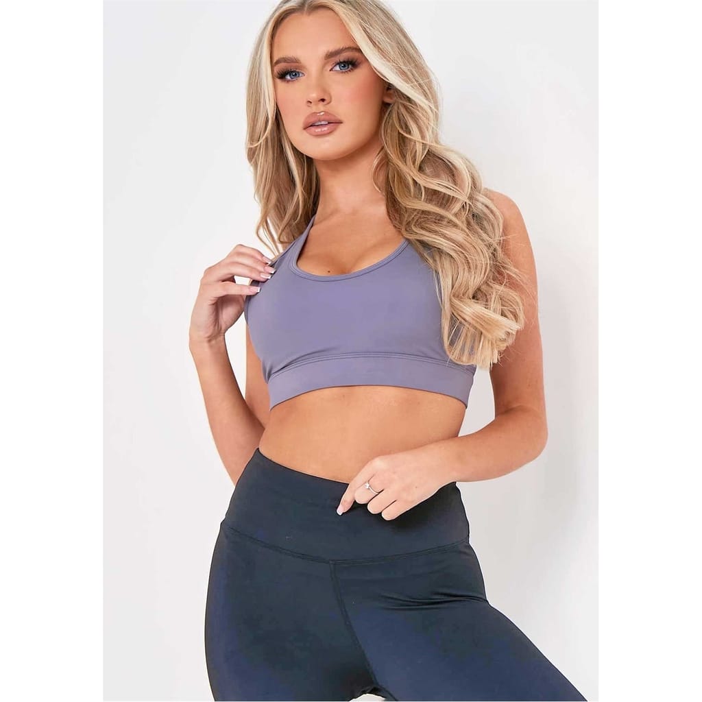 Brighten your gym collection with this sports bra crop top. Our Missy Empire Mesh Panel Gym Crop Top features a grey fabric with cut out back mesh detailing, elasticated waist, branded missy empire text finished with some underneath padding. -