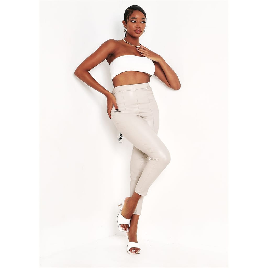 Amp up your attire with our Vegan Leather PU Seamed Trousers featuring seamed look, elasticated waist and finished in a straight leg style. -
