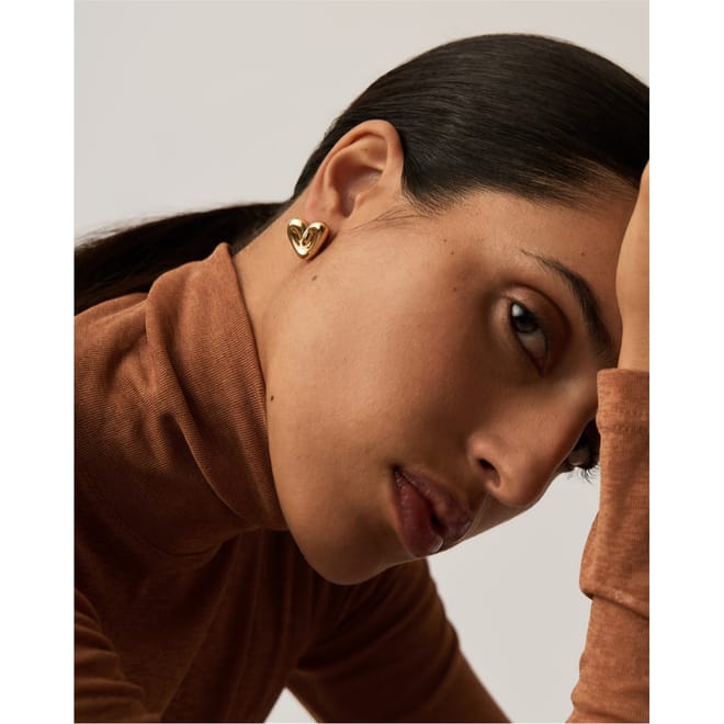 Make a subtle statement with these medium stud earrings, featuring a sculptural puffy heart design. Let them shine solo or stack with other studs and mini hoops.