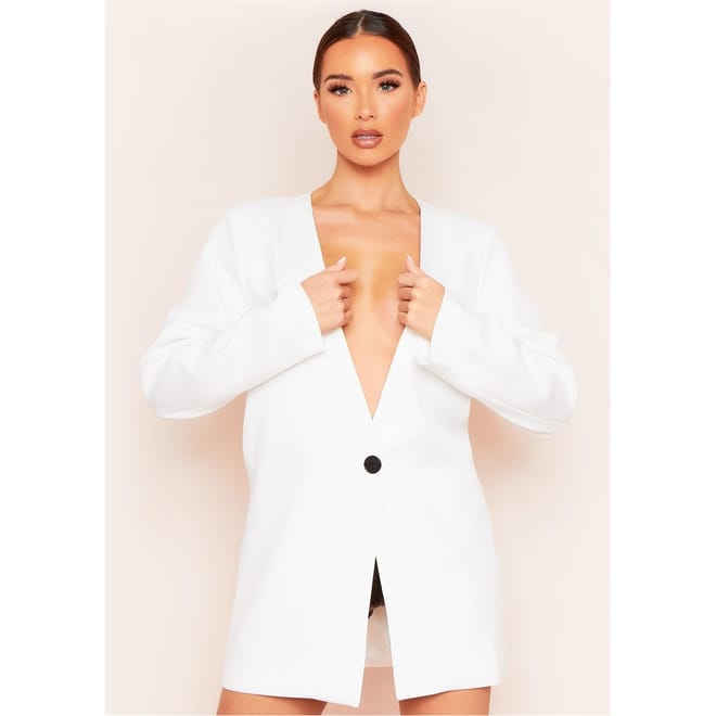 So boujee! Go sophisticated and sassy with our Plunge Collarless Longline Oversized Blazer, a gorgeous oversized blazer with extreme plunge front neckline for a glam look, with button detailing and edge to edge contrast - it looks amazing with thigh high boots! -