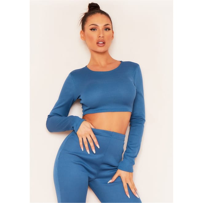 Our Long Sleeve Thick Bandage Rib Crop Top gives us all the cute lounge vibes of autumn, a gorgeous teal blue colour in a tight-fitting crop top in a thick bandage rib material with long sleeves and a high neck - perfect with loggers for a laidback glam look. -