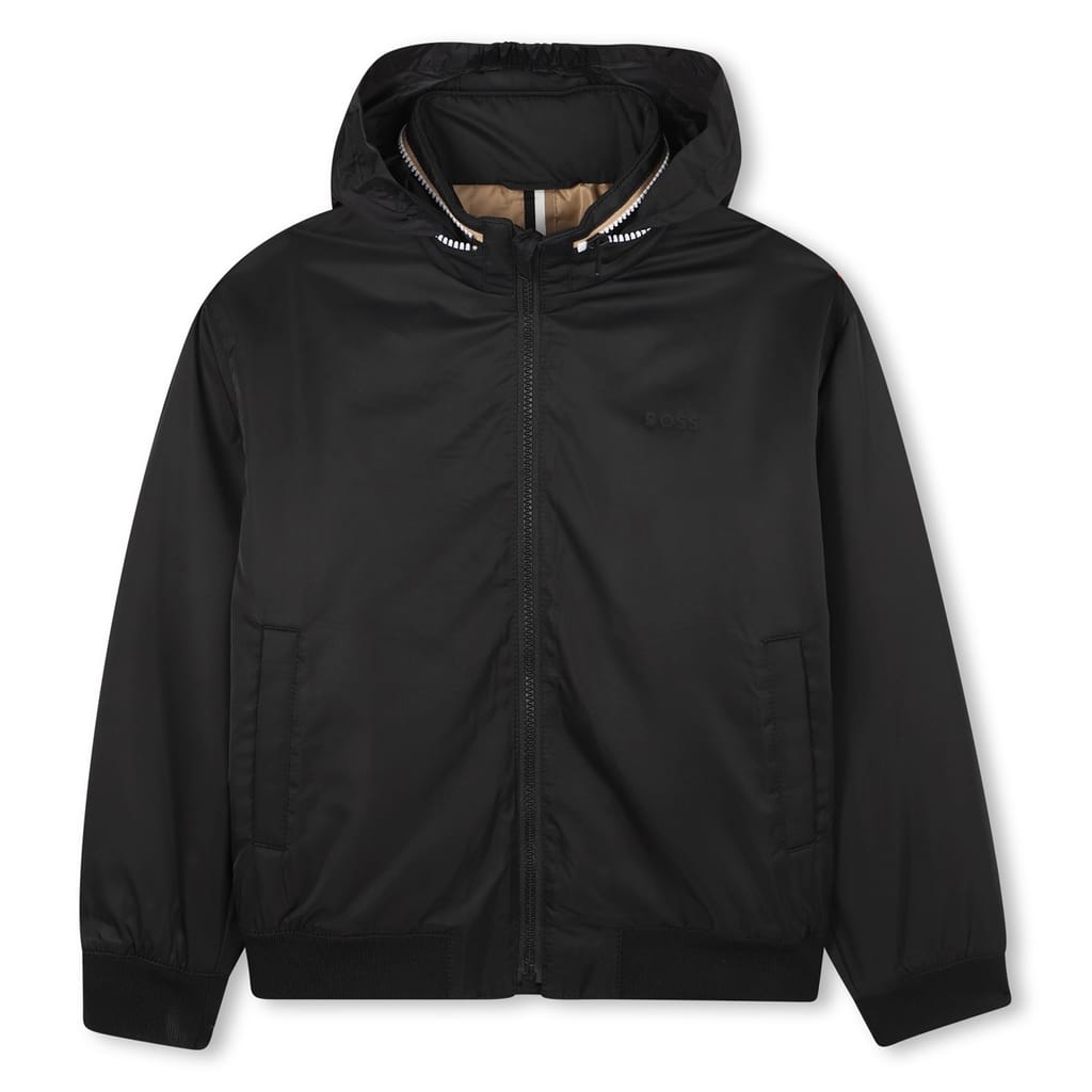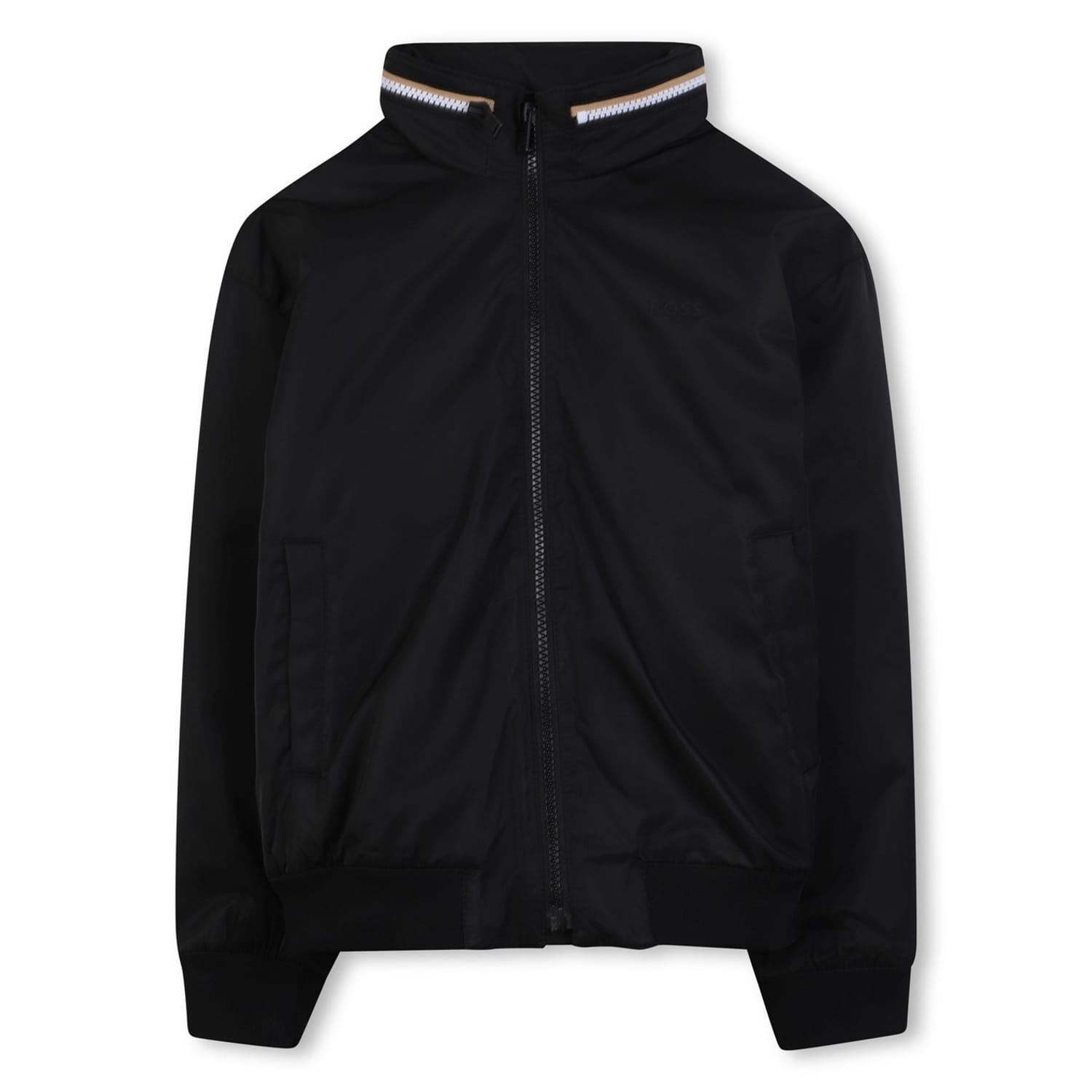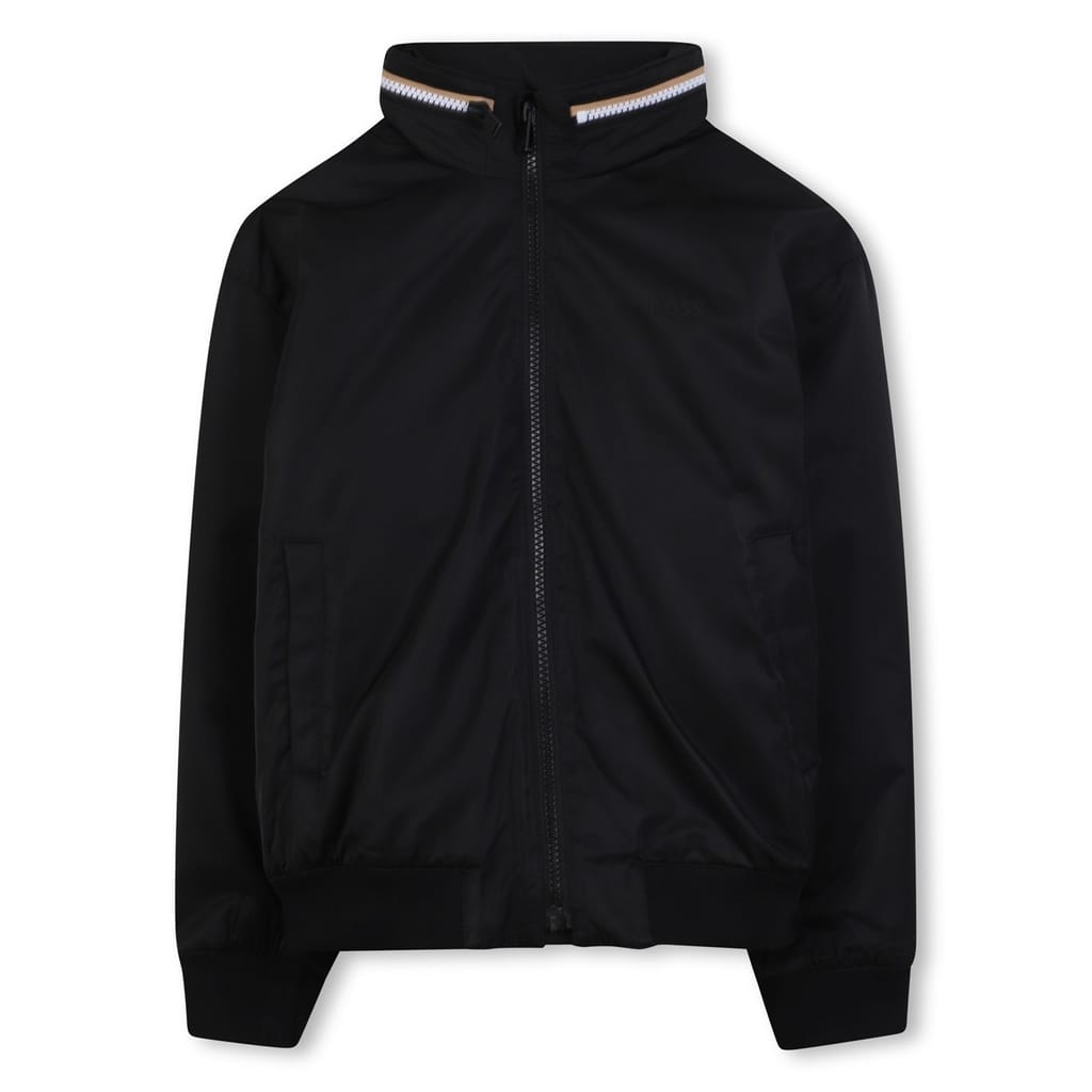 This Boss bomber jacket features a short length and a classic bomber collar. Designed with a regular fit, it includes a zipper closure and ribbed cuffs and hem for added comfort. The solid pattern is complemented by practical zipped pockets, making it a versatile addition to your wardrobe. -
