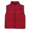 This Boss gilet features a high collar and a zipper closure, offering a regular fit. The short, padded design includes a straight hem and solid pattern. Embellished with practical pockets, flap pockets, horizontal stitching, and a logo, this piece combines functionality with style. -
