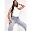 Update your outfit of the day with this crop top. Our Halterneck Cross Over Corset Top features a white fabric with corset detailing and a halterneck design. -