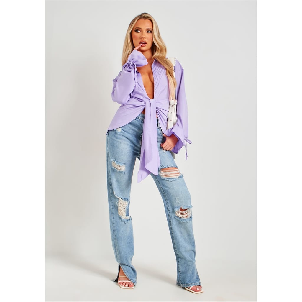 Girl, get ready to turn heads in the Plunge Drape Detail Shirt! It's all about making a statement. Featuring a plunging neckline, long sleeves with adjustable ties, and a statement knot on the front that cinches the waist. Rock it with high-waisted leather pants or jeans and strappy heels for a fierce night out. Confidence is your best accessory, babe! -