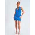 This is your sign to flaunt it, girl! Our Knitted Halter Neck Mini Dress features figure shaping bodycon fit, plunge neckline, criss cross waist detail, knitted blue material and cut to a cropped length. A forever wardrobe piece. -