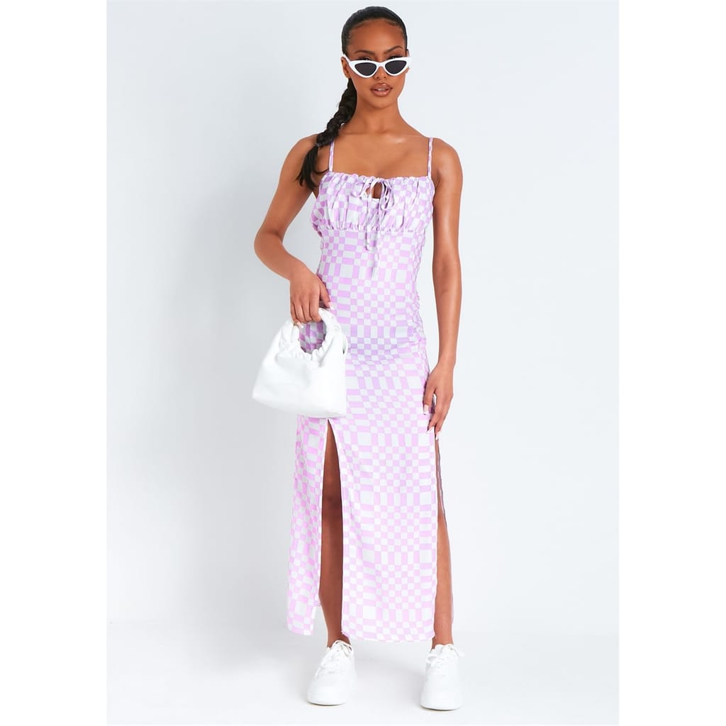 Get them summer scorers babe with our Checkerboard Print Maxi Dress. This maxi dress features a tie front with slits either side, style with some white chunky sandals. -