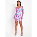 Make a statement, our Long Sleeve Mesh Underlayer Bodycon Dress features long sleeve frill detail in this gorgeous floral print. Perfect for a Summer occasion. -