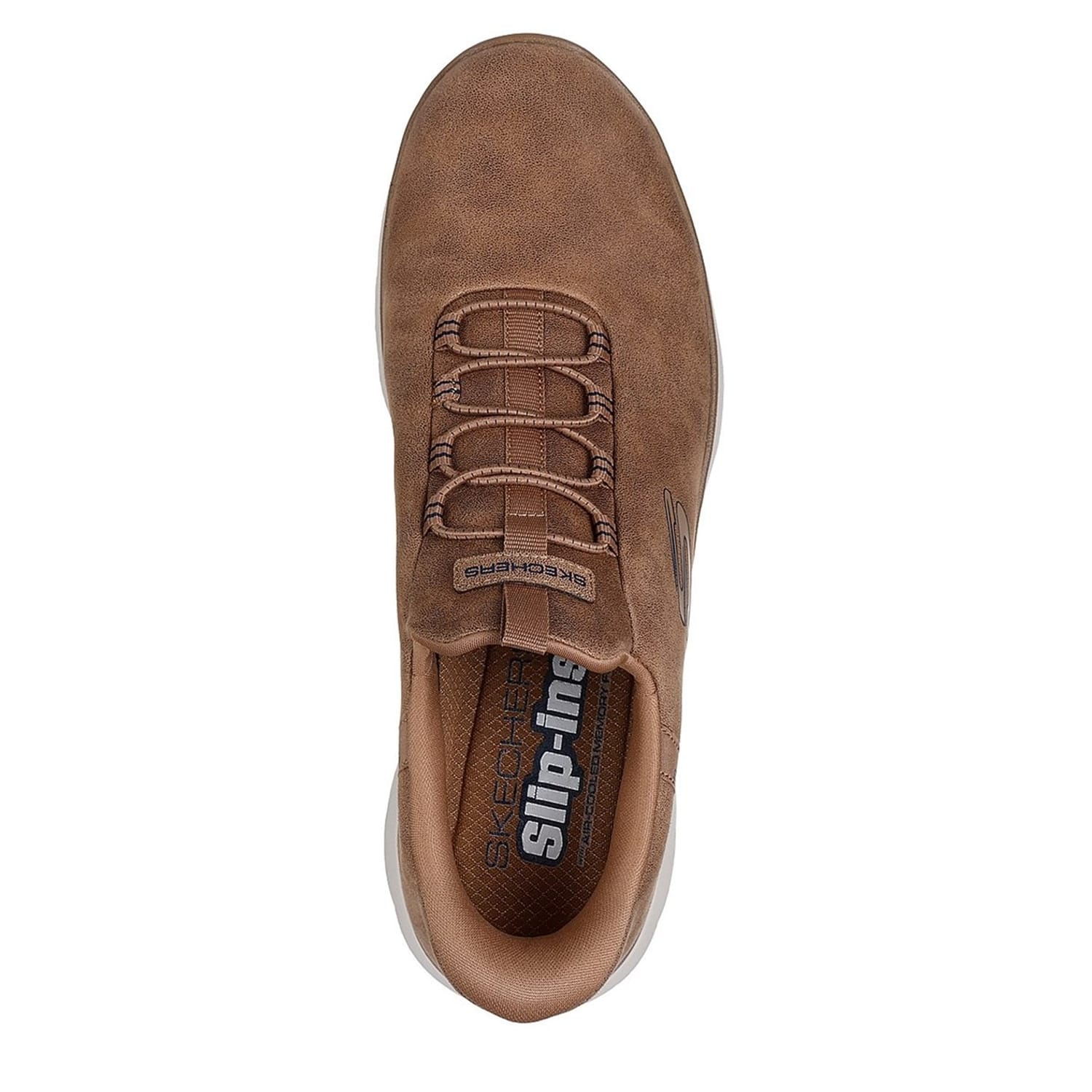 Step into easy-wearing comfort with Skechers Hands Free Slip-ins®: Summits - High Range. Along with our Exclusive Heel Pillow™ that holds your foot securely in place, this vegan style features a unique Skechers Slip-ins® molded heel panel, a mesh upper with fixed laces, and a cushioned Skechers Air-Cooled Memory Foam® insole.
