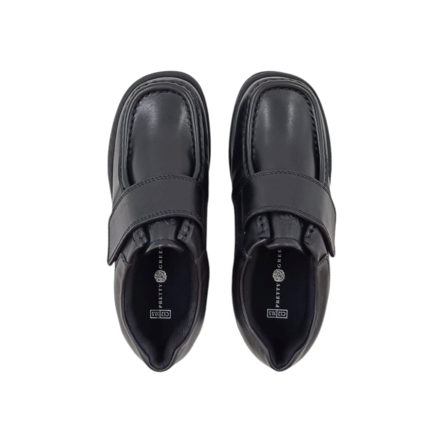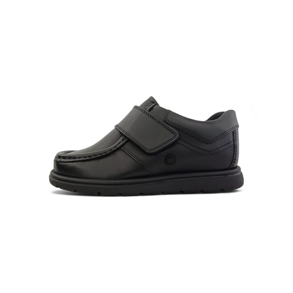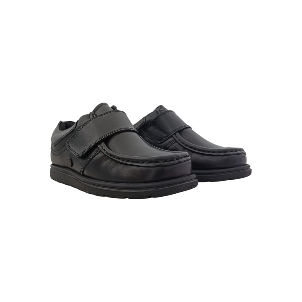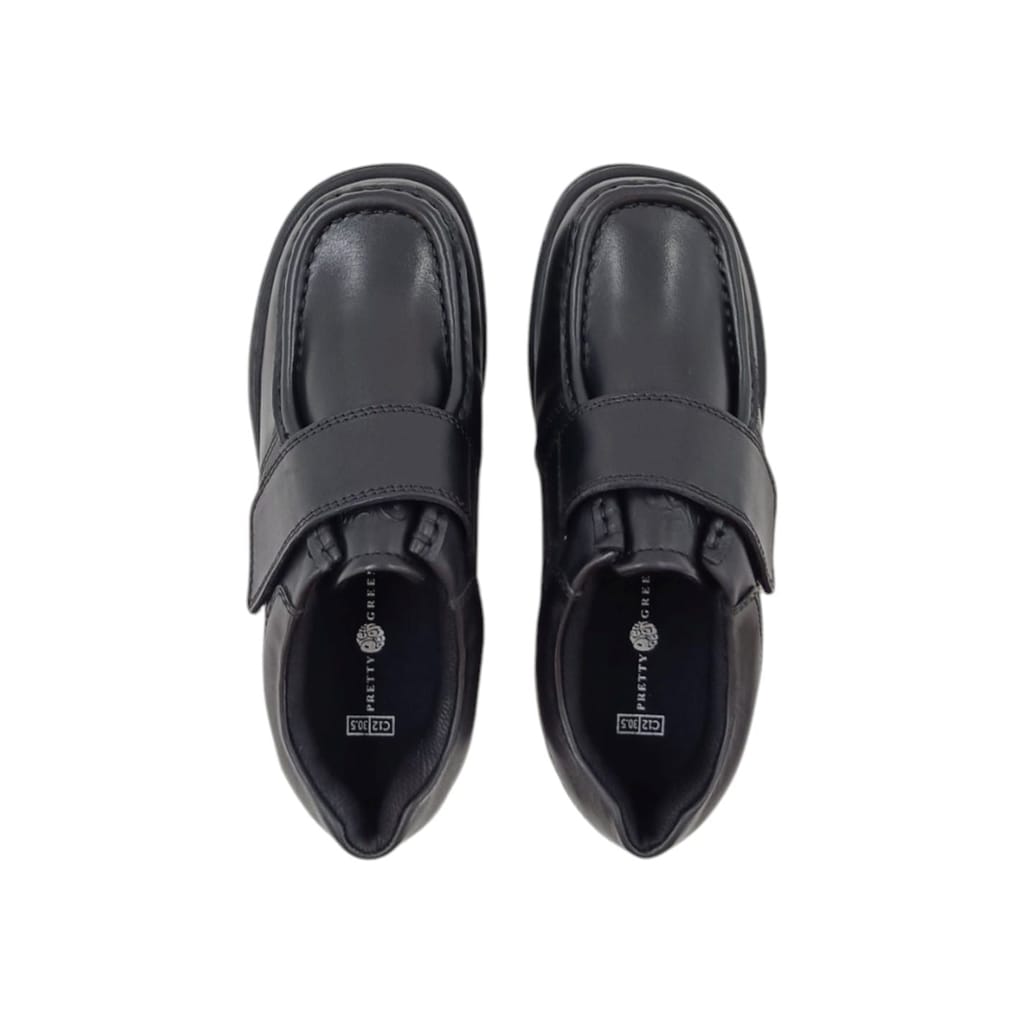 - Designed for ease and durability, the PG Waltham Velcro Shoes offer a sleek black leather finish combined with a secure Velcro strap for quick fastening. Whether for school, daily wear, or casual outings, these shoes provide a snug fit, cushioned comfort, and a non-slip rubber sole for added safety. Ideal for those seeking a smart look with the convenience of easy on and off.