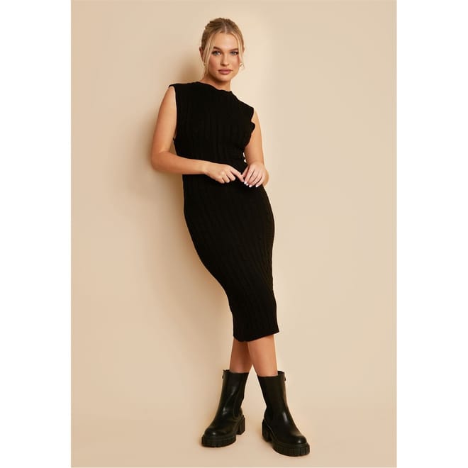 Amp up your knitwear collection with our Cable Knit Midi Dress, with a high neck and midi length, this is the perfect piece to layer for the colder seasons. -