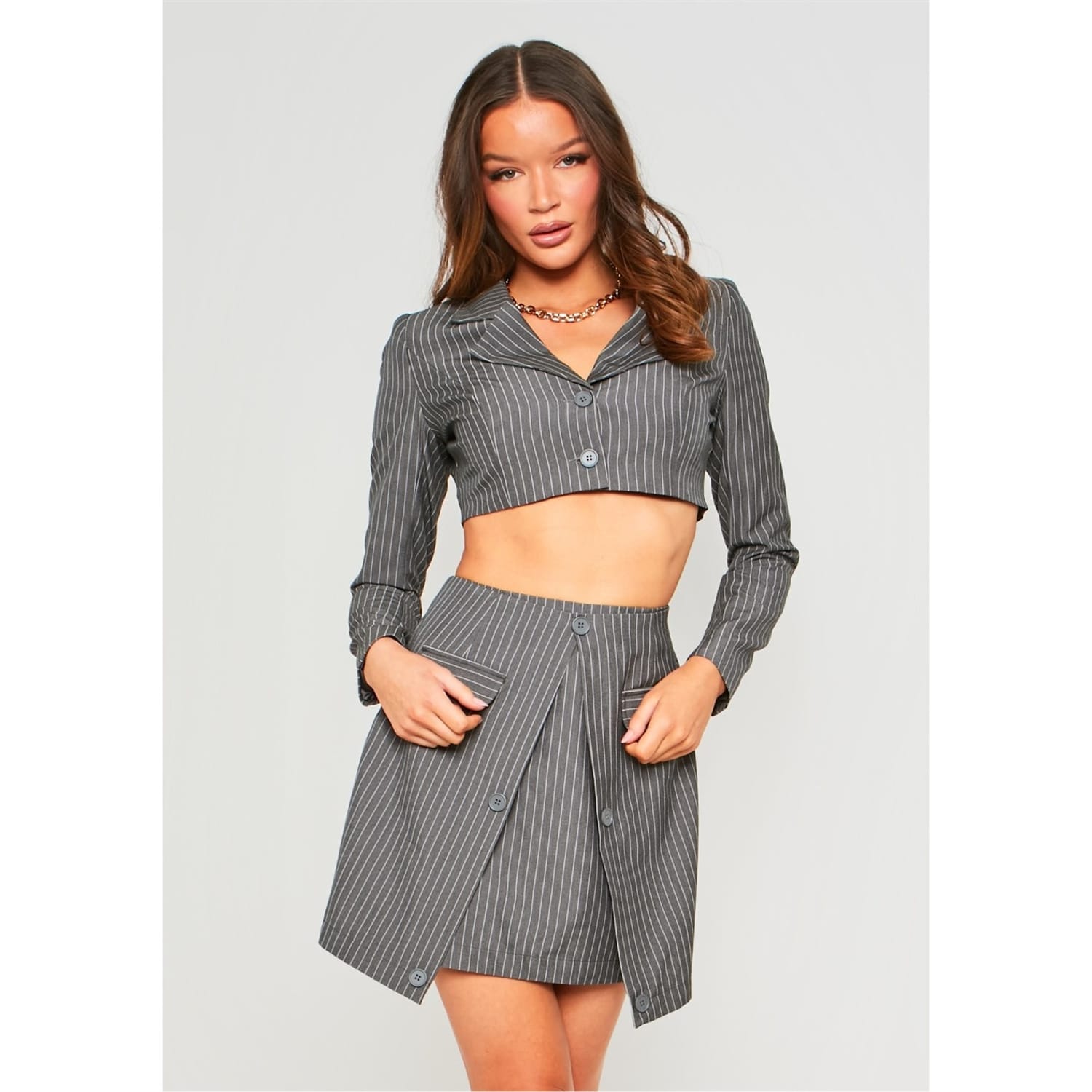 Looking for a skirt that screams boss babe? Look no further than our Tailored Button Up Asymmetric Mini Skirt! With its sleek stripes and daringly asymmetrical hemline, this skirt is the perfect choice for any woman who wants to show off her killer sense of style. So why settle for boring when you can rock this skirt like the boss you are? Add it to your cart now and get ready to slay all day! -
