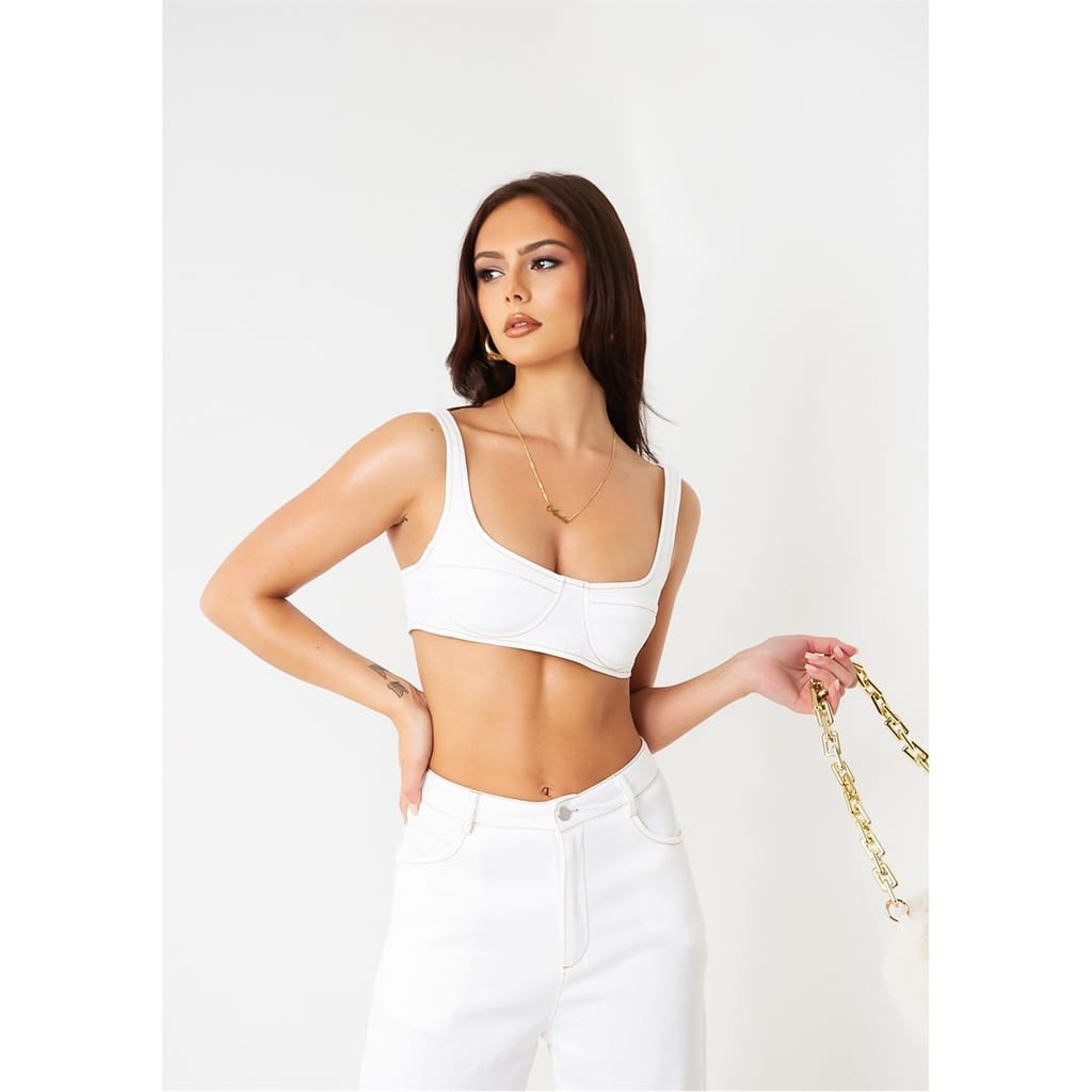 Get ready to turn heads in the Contrast Stitch Bralette. This super cute top screams confidence with its bold contrast stitching and figure-flattering fit. Pair it with the matching trousers for an effortlessly chic co-ord look that oozes sophistication. Add oversized hoops and strappy heels for a killer night-out. -