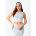 Soft Racer Back Top: Embrace comfort and style with this versatile racerback essential. Crafted from soft, light grey fabric, it offers a relaxed fit perfect for casual days or layering. Elevate your wardrobe with this timeless piece that seamlessly combines comfort and fashion. -