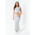 Soft Fold Over Maxi Skirt: Effortless elegance meets ultimate comfort in this versatile maxi skirt. Featuring a soft, light grey fabric and a fold-over waistband, it offers a flattering silhouette that can be styled for both casual and dressy occasions. Elevate your wardrobe with this essential piece, perfect for adding a touch of understated sophistication to any ensemble. -