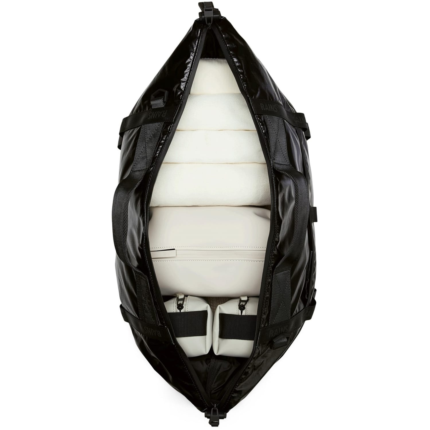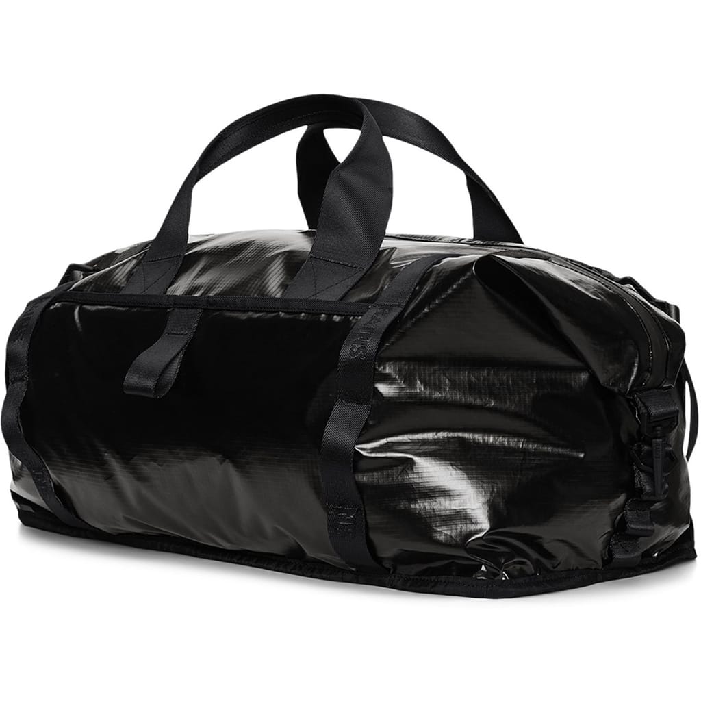 Discover the Rains bowling bag, a stylish and functional accessory. This bag features a secure zipper closure and a practical double handle for easy carrying. It includes multiple pockets, such as a zipped pocket, side pocket, and main pocket, offering ample storage space. Ideal for those seeking a blend of fashion and utility. -