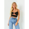 Elevate your evening ensemble with our stunning Black Cut Out Top, designed to make you feel confident and chic for any romantic occasion. Crafted from a luxuriously soft blend of breathable fabric, this top drapes beautifully over your silhouette while providing ultimate comfort for an unforgettable night out. -