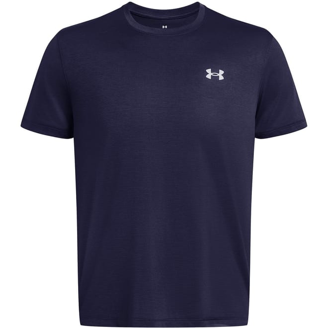 This Under Armour top is designed for activewear enthusiasts. Featuring a crew neck and regular fit, it offers both comfort and style. The horizontal stripe pattern adds a dynamic touch, while the logo embellishment highlights the brand's identity. Ideal for sporting activities, this performance top is a versatile addition to your wardrobe. -