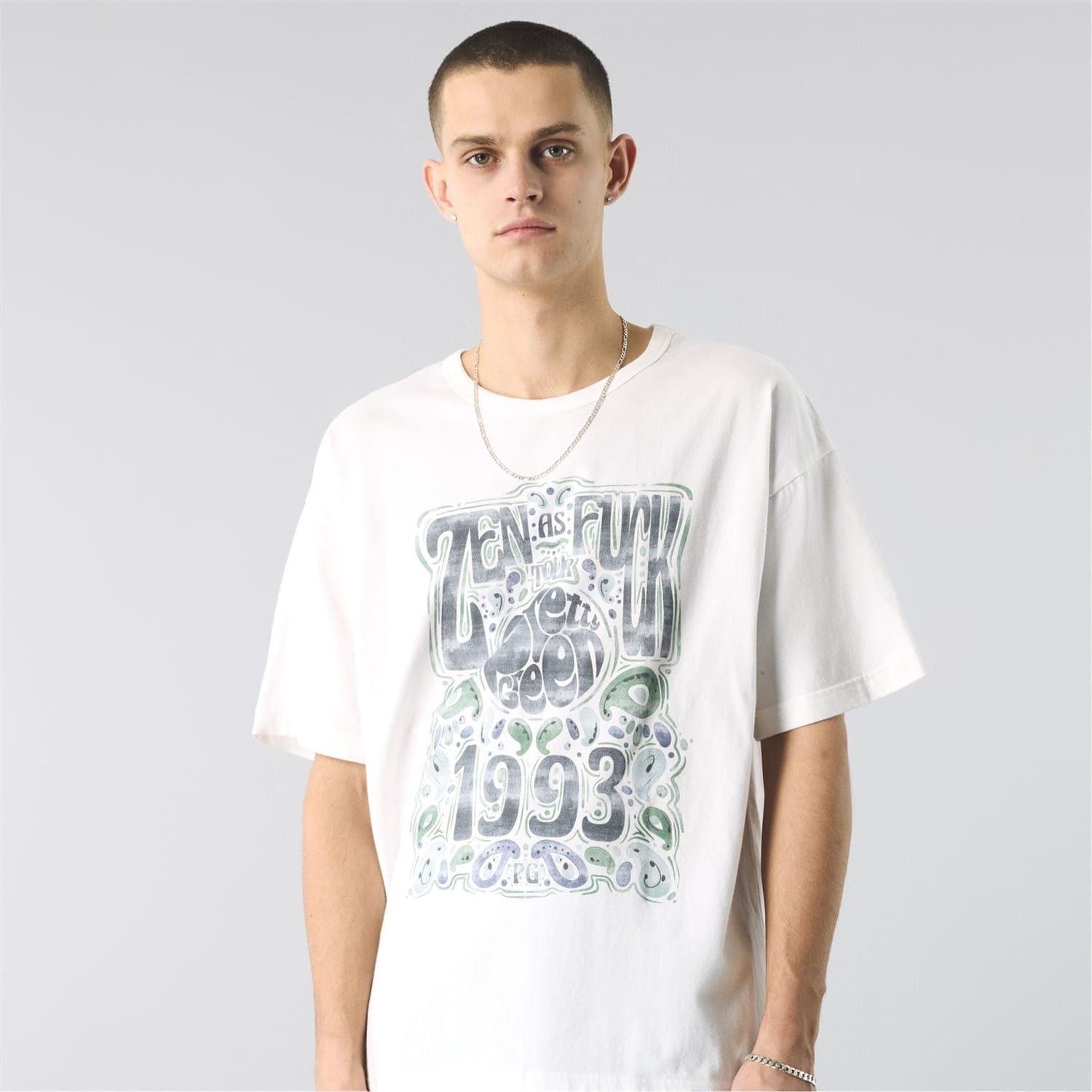 This Pretty Green top is a casual staple featuring a regular fit and short sleeves. The crew neck design is adorned with a graphic print, showcasing distinctive lettering and a logo embellishment. Perfect for adding a touch of style to your everyday wardrobe. -