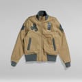 The design of the E bomber jacket offers shaped sleeves with a short sleeve overlay effect. Welt pocket are placed at the under arm and are partly hidden underneath. This bomber jacket shows more pockets at the chest, waist and lower back. When preferred, this loose fitted style can be tightened at the waist to achieve a more voluminous look. Graphic prints and badges are added to the chest and lining. This style is part of the Extremes collection, where timeless pieces are created by merging innovation with craftsmanship.