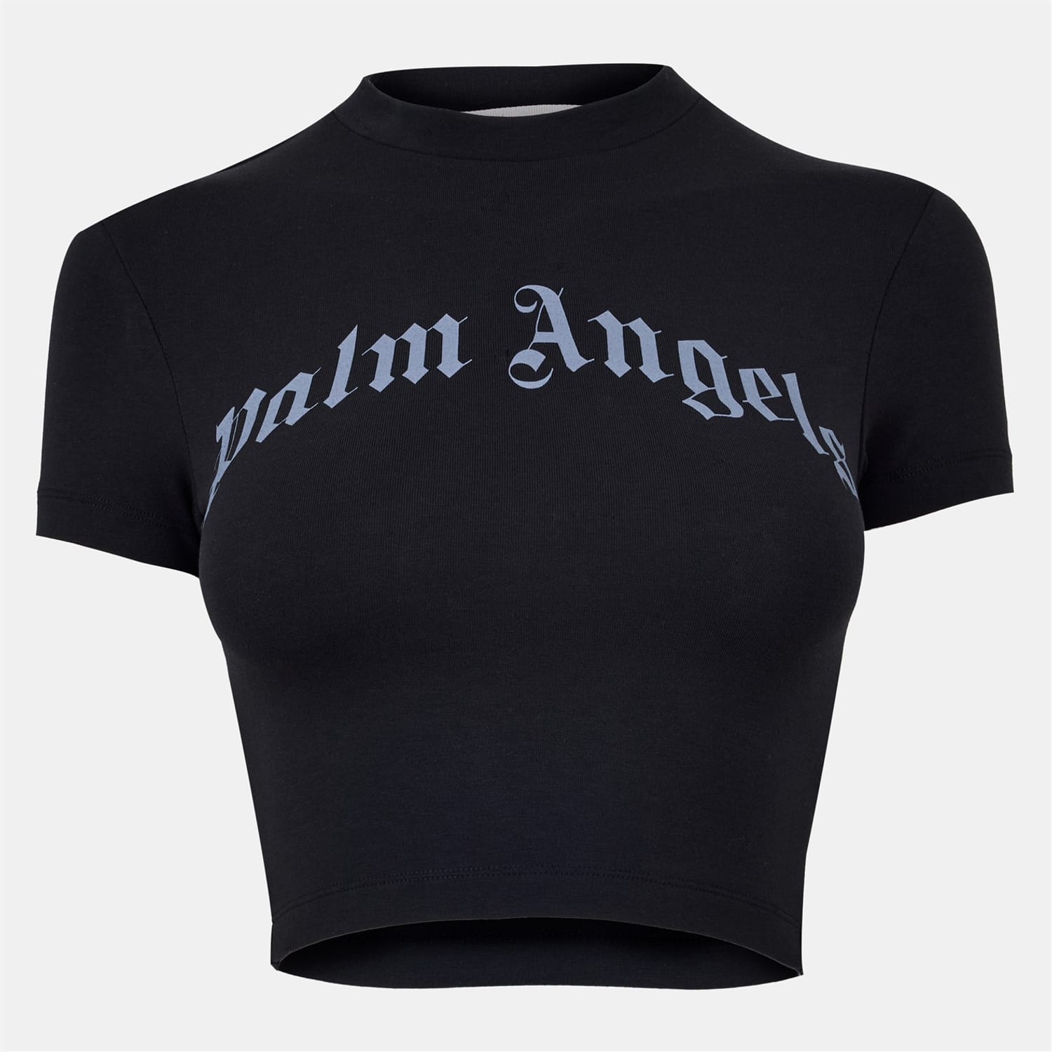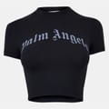 This Palm Angels baby top features a cropped design with a mock neck and short sleeves. The slim fit ensures a comfortable wear, while the graphic print adds a stylish touch. A logo embellishment completes the look, making it a standout piece for your little one's wardrobe. -