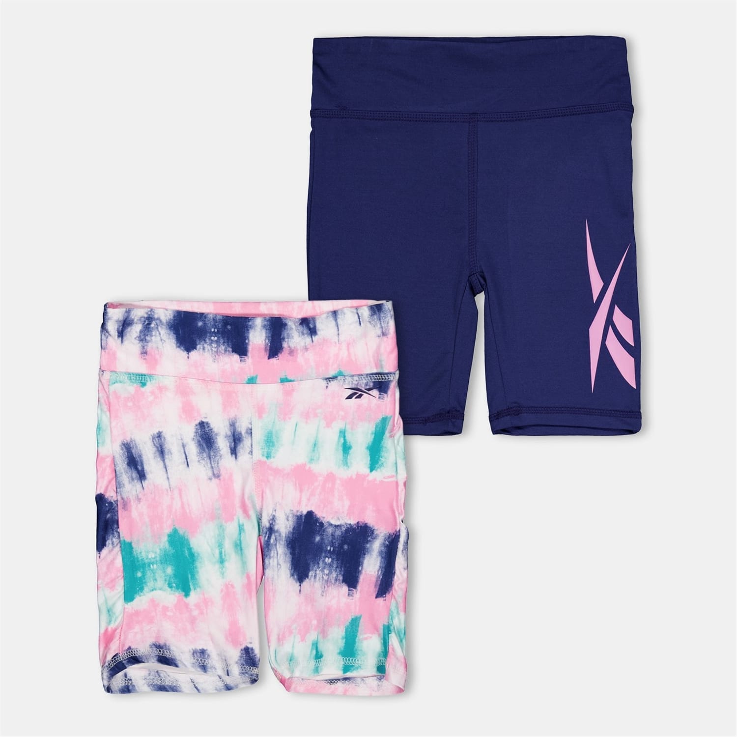 Reebok shorts in a 2-pack offer a stylish tie-dye pattern, perfect for casual and activewear collections. Featuring an elasticated waistband for comfort, these bermuda shorts are designed with a slim fit. The iconic logo embellishment adds a touch of brand identity, making them ideal for biking activities. -