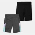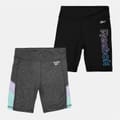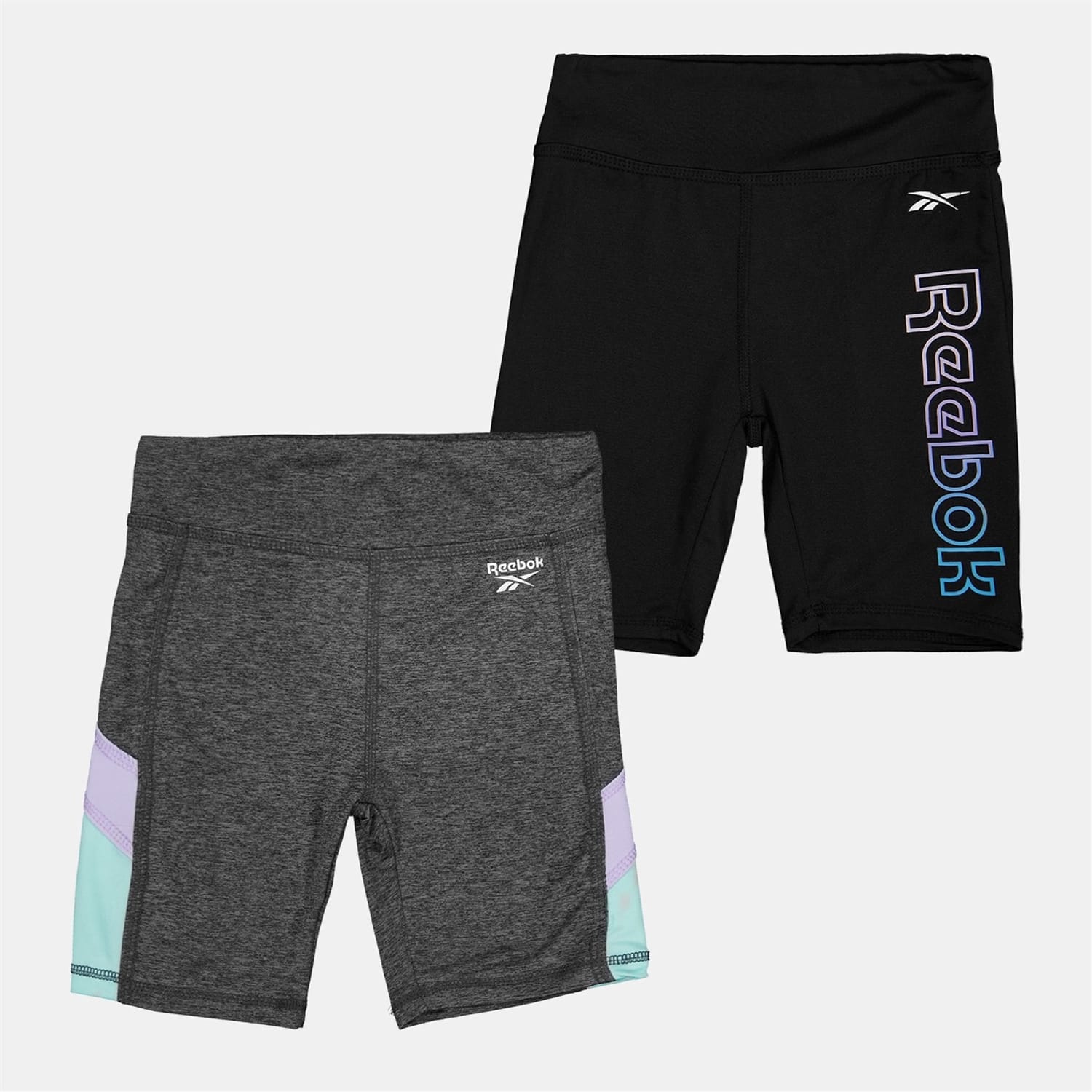 Reebok shorts offer a versatile addition to your wardrobe with a 2-pack of bermuda shorts. Designed with a slim fit and an elasticated waistband, these shorts ensure comfort and style. The color block pattern, logo, and contrast stitch embellishments add a distinctive touch. Perfect for casual and activewear collections, these shorts are ideal for biking activities. -