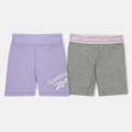 Reebok presents a 2-pack of solid bermuda shorts, perfect for casual and activewear collections. These slim fit shorts feature an elasticated waistband for comfort and flexibility. The design is completed with a subtle logo embellishment, making them ideal for biking activities. -
