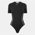 Discover the seamless elegance of Off White's slim fit top. This solid piece features a classic crew neck and short sleeves, complemented by fitted cuffs for a refined look. Perfect for those who appreciate minimalist design with a touch of sophistication. -