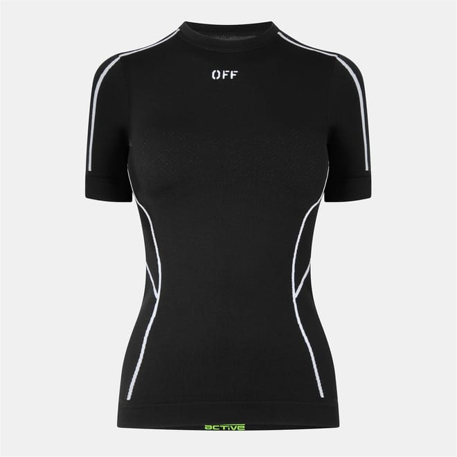 Discover the seamless elegance of Off White's casual top. This solid, short-sleeve piece features a crew neck and a slim fit, perfect for a sleek, modern look. -