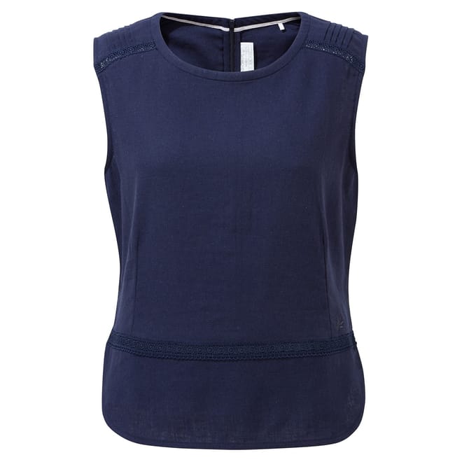 Discover the Craghoppers top, featuring a sleeveless design with a crew neck. This regular fit piece is adorned with elegant lace detail, adding a touch of sophistication to its solid pattern. Perfect for those seeking a blend of style and comfort. -