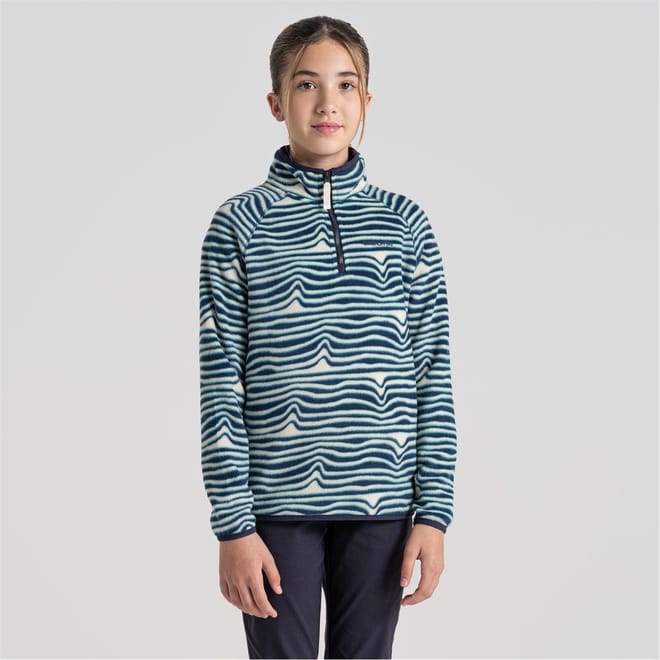 Discover the Craghoppers top, featuring a wave pattern and a zip neck for a modern touch. This long-sleeve design includes raglan sleeves and a ribbed cuff, ensuring a comfortable regular fit. The top is embellished with a logo, adding a subtle brand detail. -