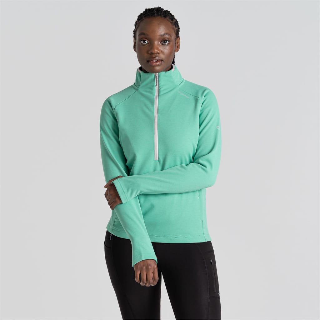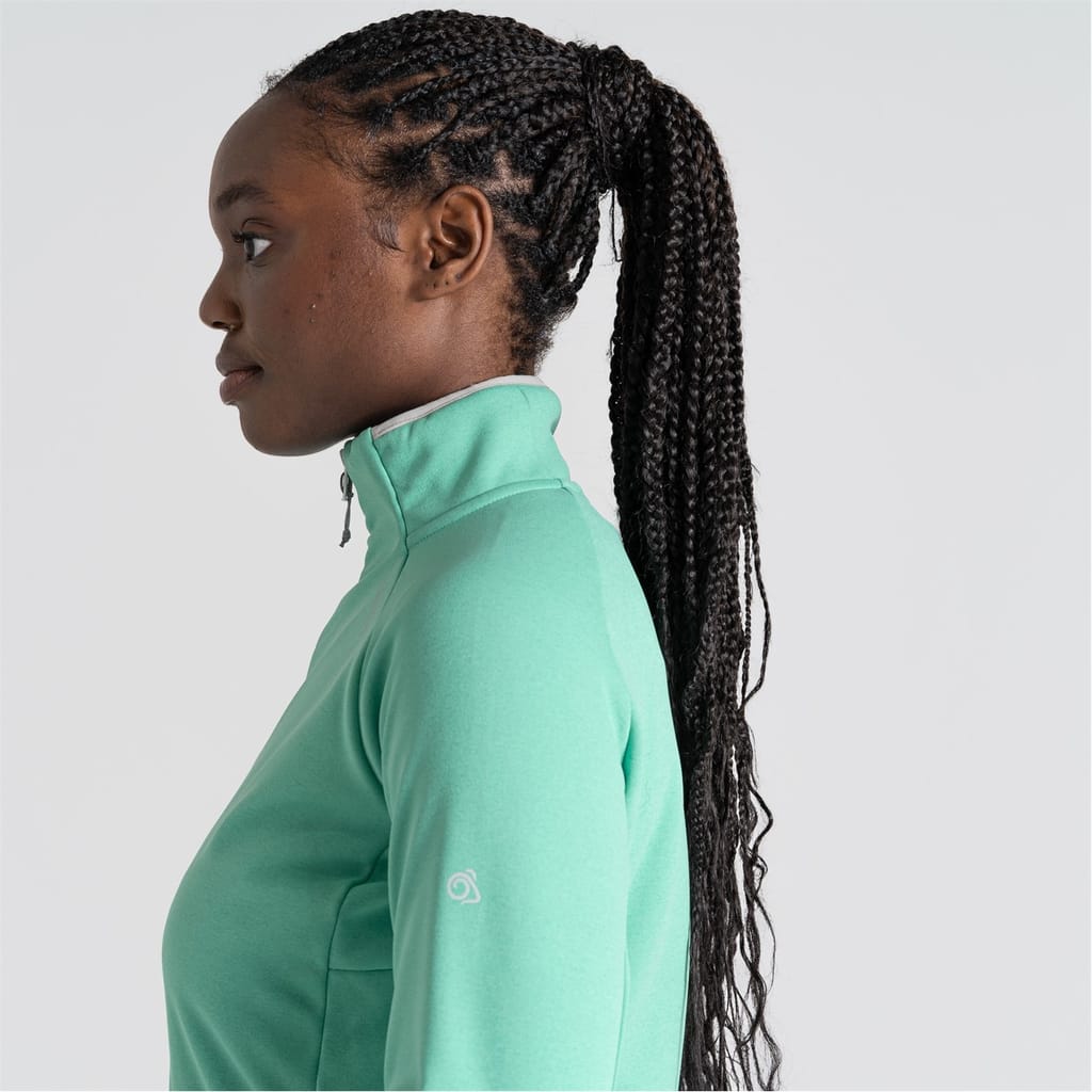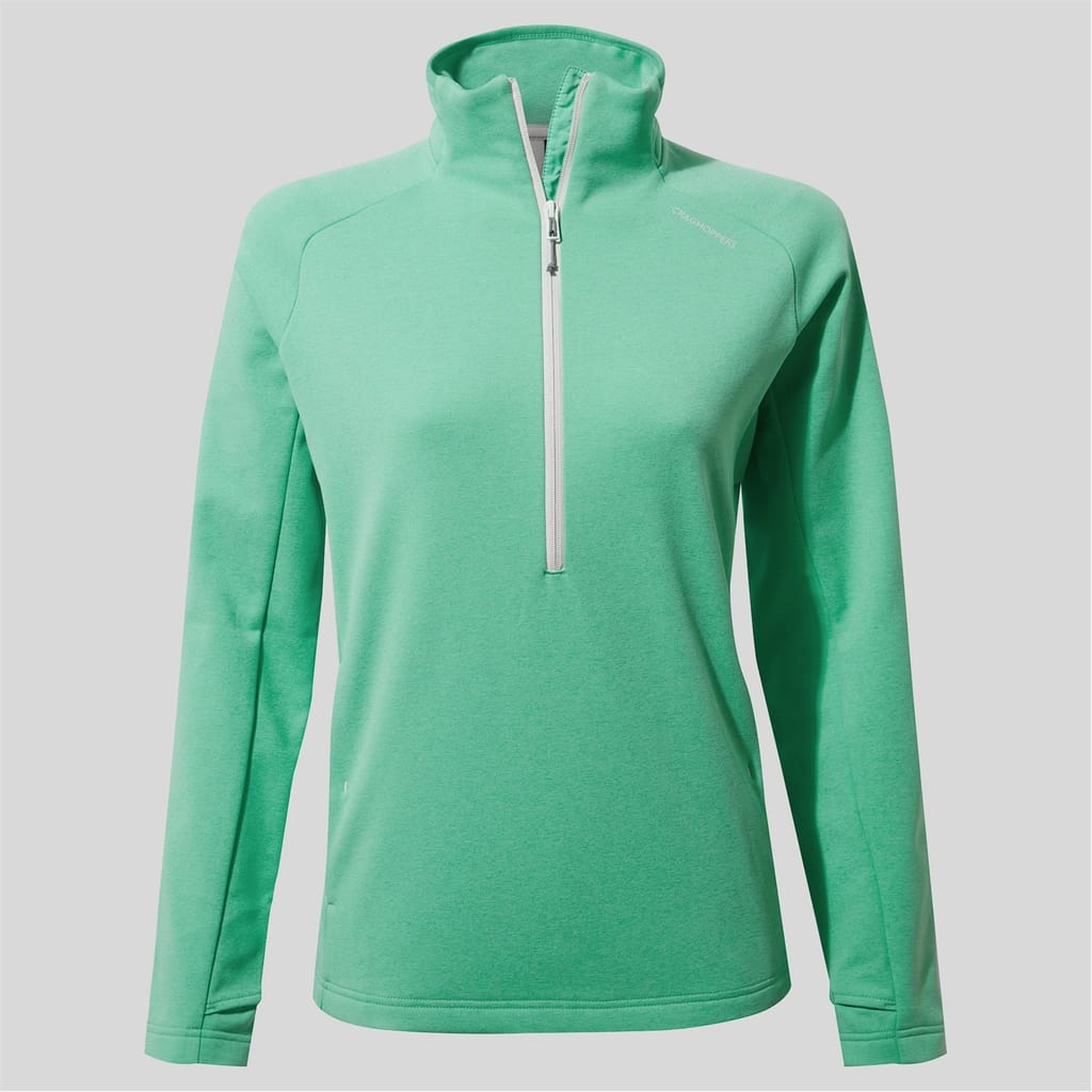This Craghoppers top is designed for activewear enthusiasts. Featuring a zip neck and a regular fit, it offers comfort and style. The long raglan sleeves with fitted cuffs ensure ease of movement. A solid pattern and logo embellishment add a touch of simplicity and brand identity. The top is equipped with a zipper closure for convenience. -