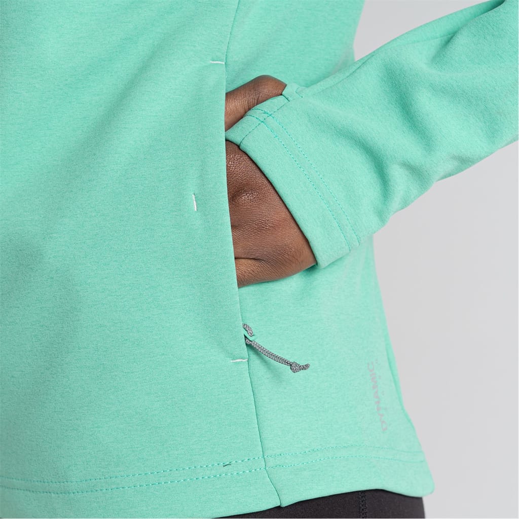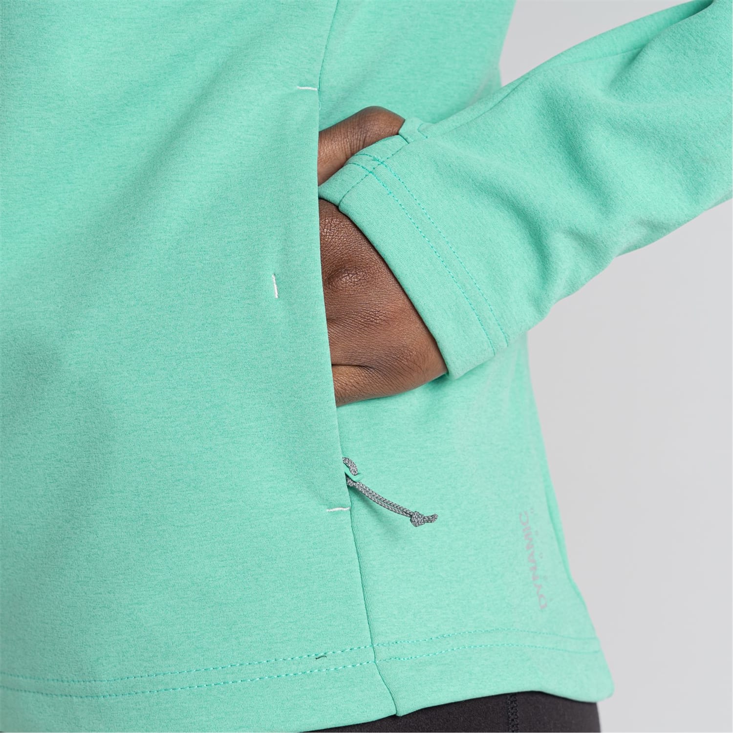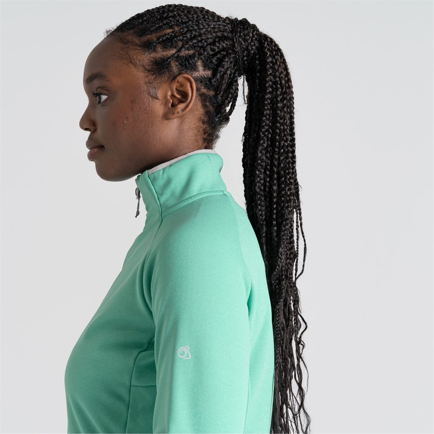 This Craghoppers top is designed for activewear enthusiasts. Featuring a zip neck and a regular fit, it offers comfort and style. The long raglan sleeves with fitted cuffs ensure ease of movement. A solid pattern and logo embellishment add a touch of simplicity and brand identity. The top is equipped with a zipper closure for convenience. -