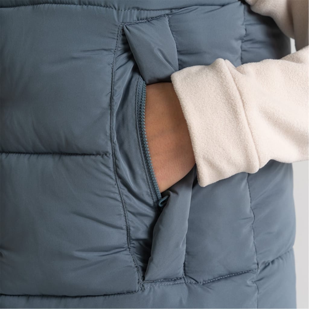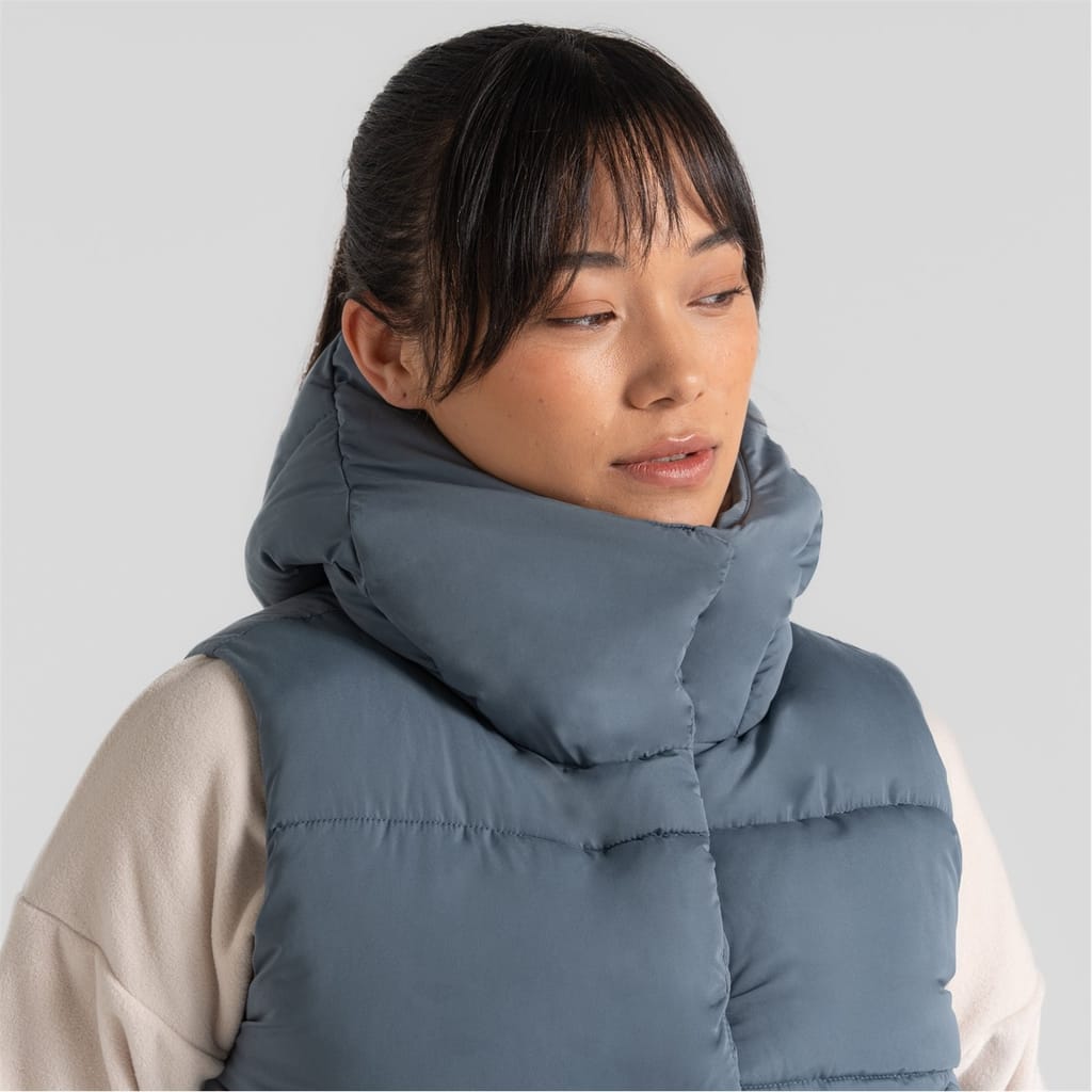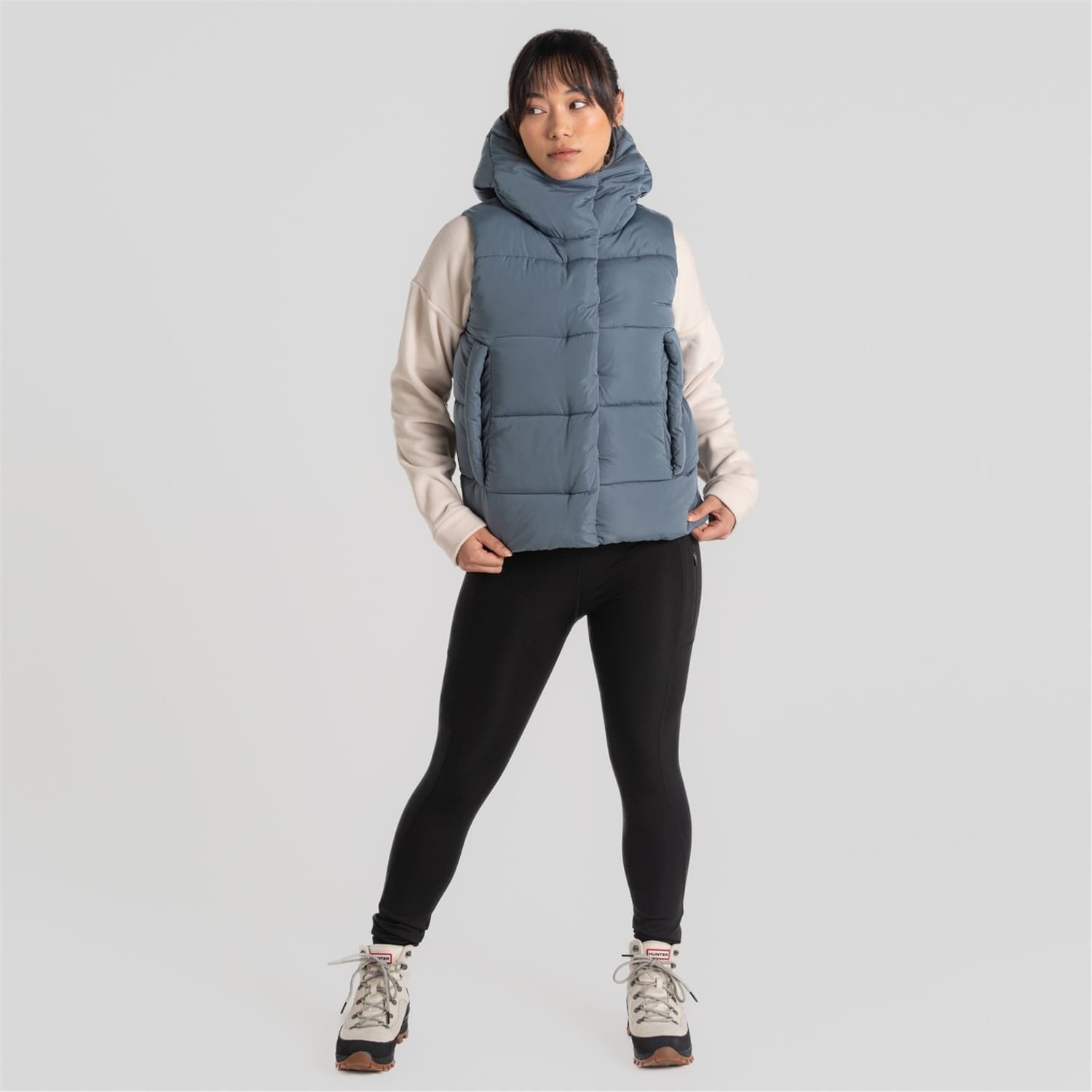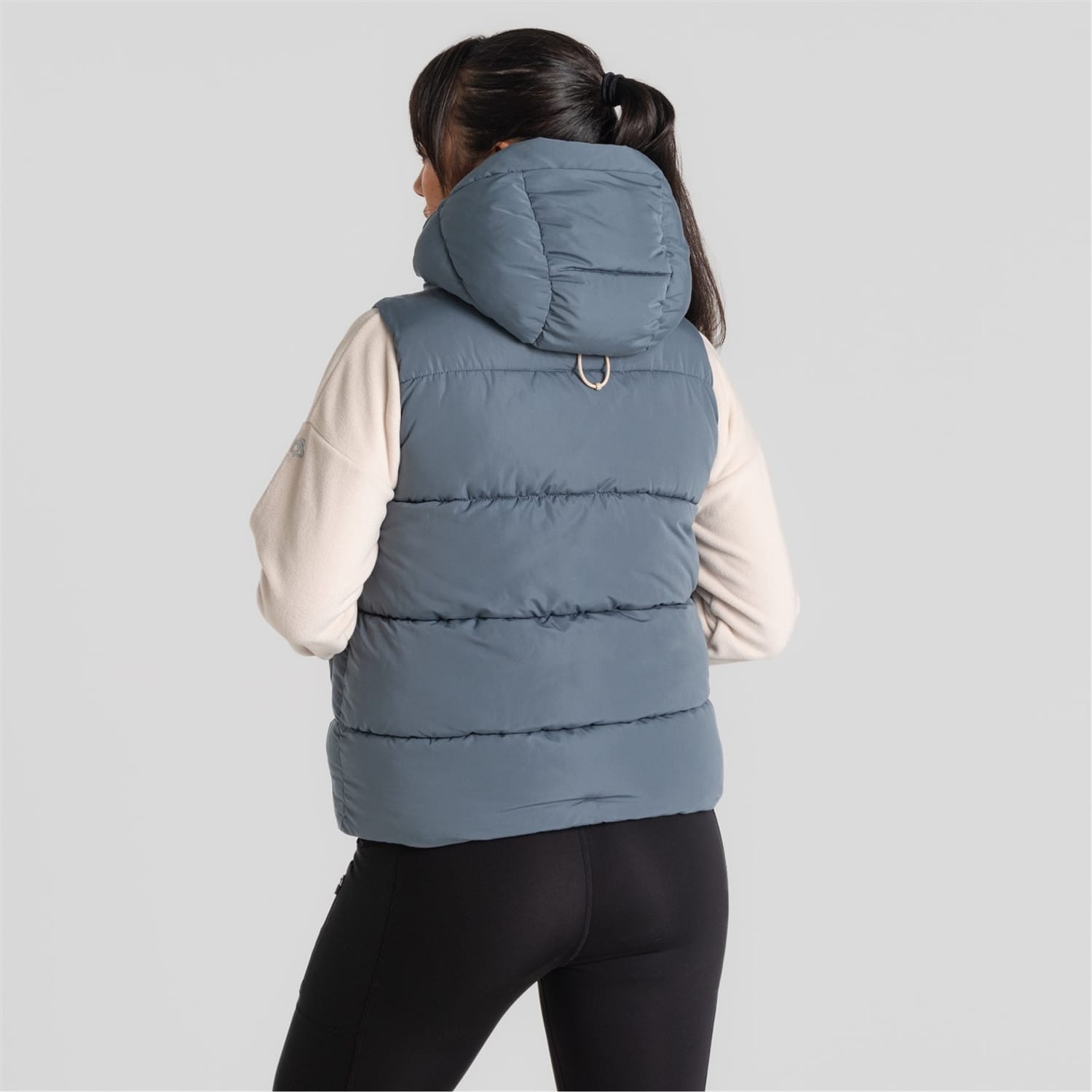 Craghoppers' Women's Crag Eilish Hoodie Gilet delivers warmth and is easy to wear with other pieces. The sleeveless design features a protective hood and structured shape for outdoor practicality with urban appeal.