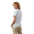 This Craghoppers top is a semi-formal piece featuring a solid pattern and a polo collar. It has short sleeves and a regular fit, offering a comfortable yet stylish look. The button closure adds a classic touch, while the logo embellishment subtly highlights the brand's identity. -