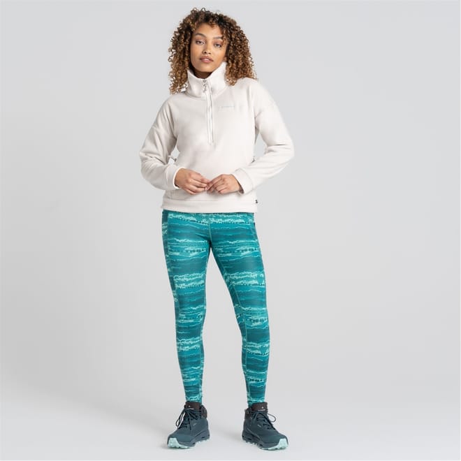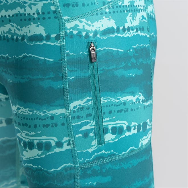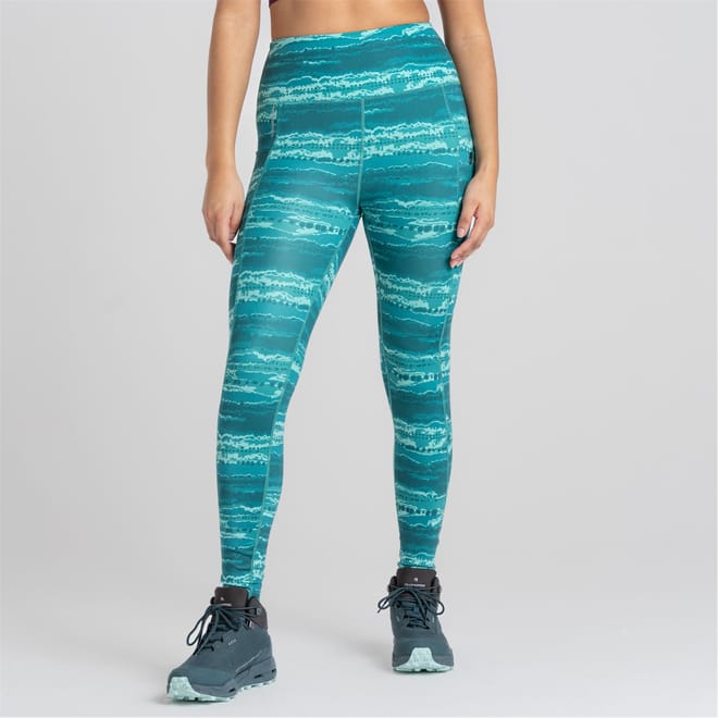 Craghoppers leggings feature a wave pattern, perfect for activewear enthusiasts. The slim fit design ensures comfort and style, while the subtle logo embellishment adds a touch of brand identity. Ideal for those seeking a blend of functionality and fashion in their workout attire. -