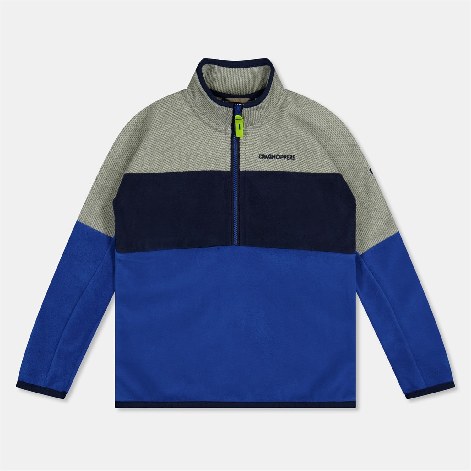 The Craghoppers Linden top is a casual essential featuring a mock neck and long sleeves. Designed in a regular fit, it showcases a stylish color block pattern. The top is adorned with a logo embellishment and includes a practical half zipper closure. Ribbed cuffs add a touch of detail, making it a versatile addition to your wardrobe. -
