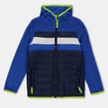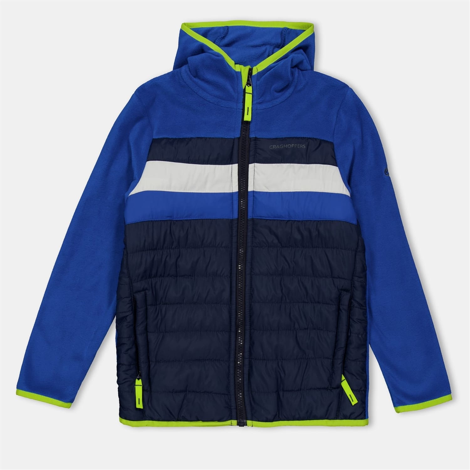The Craghoppers hybrid jacket is designed for practicality and style. Featuring a hooded neckline and a zipper closure, this insulated jacket offers a regular fit. The color block pattern adds a modern touch, while the ribbed cuffs ensure comfort. A subtle logo embellishment completes the look, making it a versatile addition to your wardrobe. -