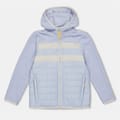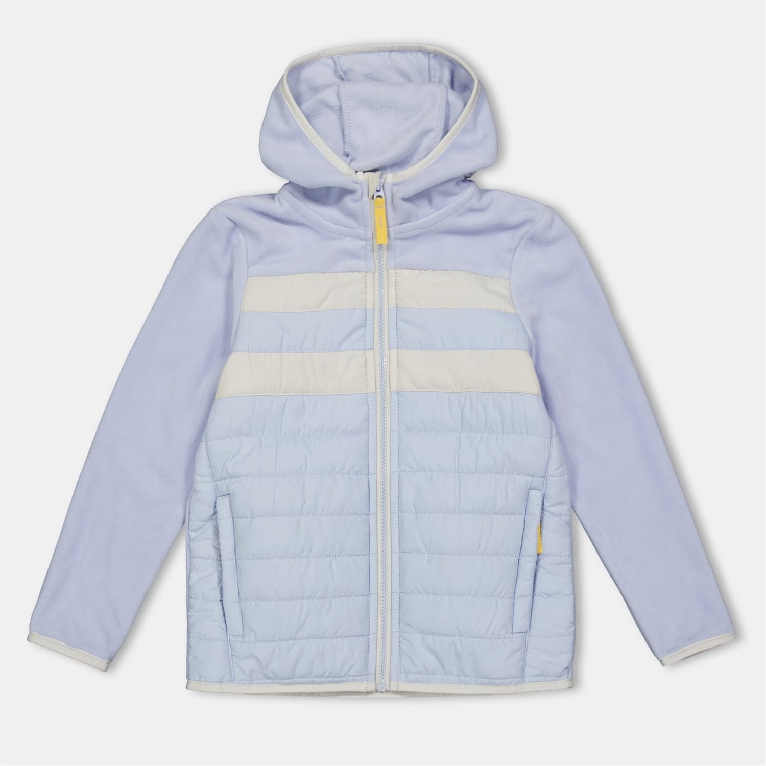 This Craghoppers hybrid jacket is designed for practicality and style. Featuring a hooded neckline and a zipper closure, it offers a regular fit with a straight hem. The jacket is insulated for added warmth and includes ribbed cuffs for comfort. Its color block pattern and pockets add a touch of functionality and flair. -