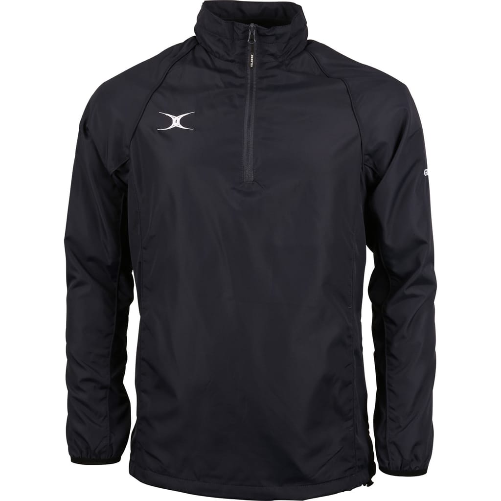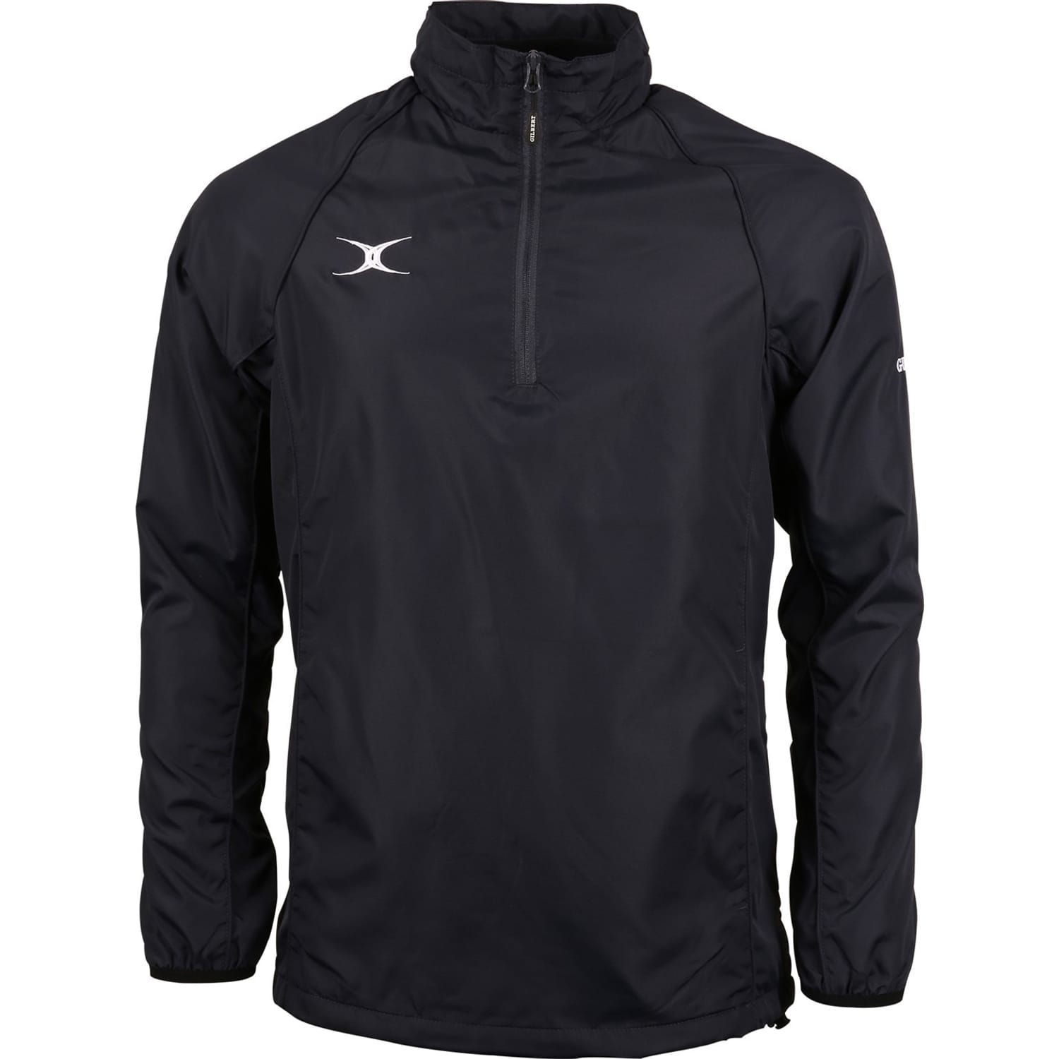 The Gilbert running jacket is designed for performance with a regular fit and a solid pattern. It features a zip neck and a zipper closure for convenience. The jacket includes an elasticated cuff and a straight hem, providing a comfortable fit. A logo embellishment adds a touch of brand identity to this practical piece. -