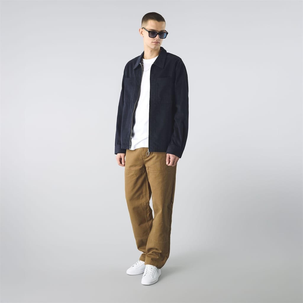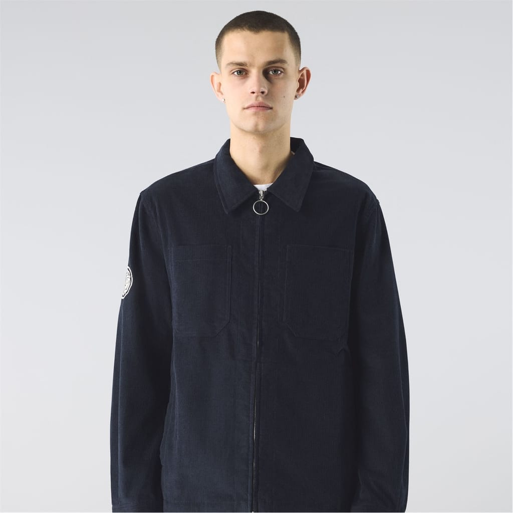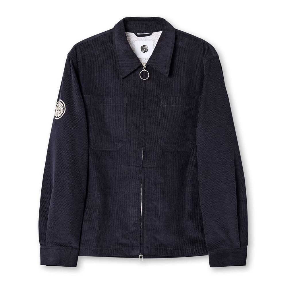 This Pretty Green overshirt features a shirt collar and a straight hem, offering a regular fit. It is designed with a zipper closure and includes embellishments such as a logo, patch, and chest pocket. The ribbed pattern adds a touch of texture to this versatile piece. -