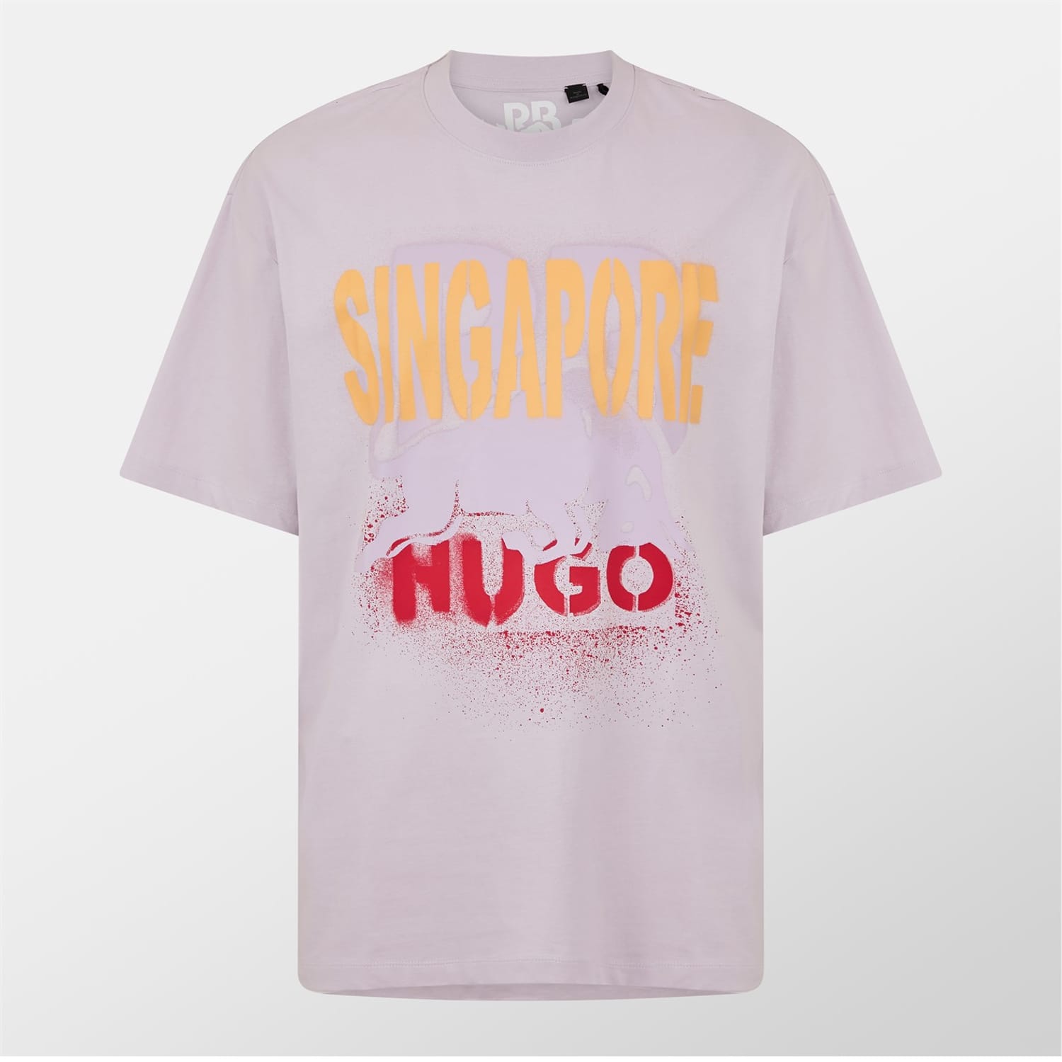 This Hugo top features a regular fit and a classic crew neck, offering a comfortable and stylish option for your wardrobe. The graphic print is enhanced with distinctive lettering and a logo embellishment, adding a touch of brand identity to the design. -