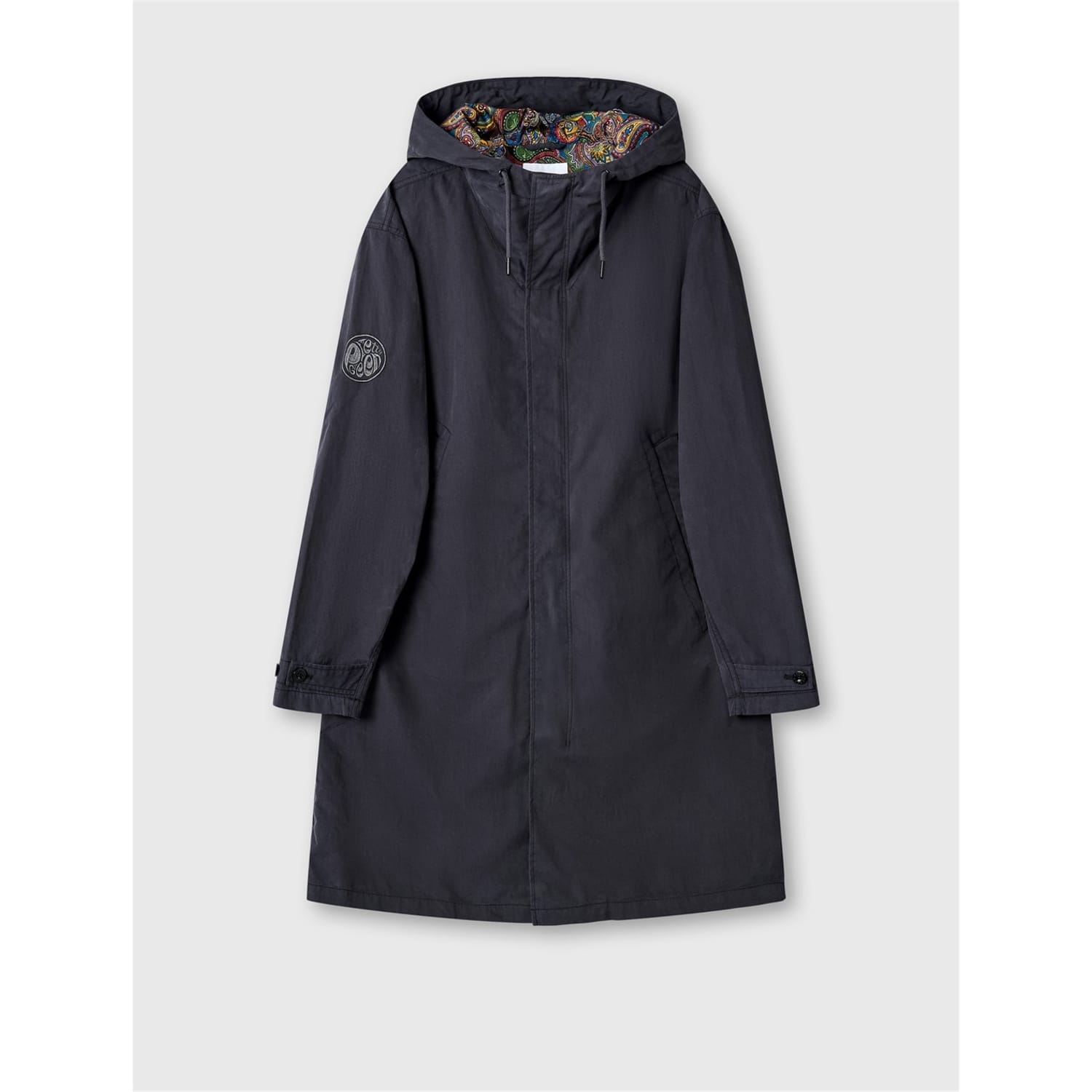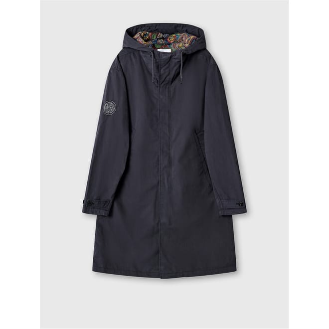 The Pretty Green parka jacket is perfect for winter, featuring a hooded design and a solid pattern. It offers a regular fit with a straight hem and a convenient zipper closure. Part of the sport and casual collections, this jacket is adorned with a logo embellishment, adding a touch of brand identity. -