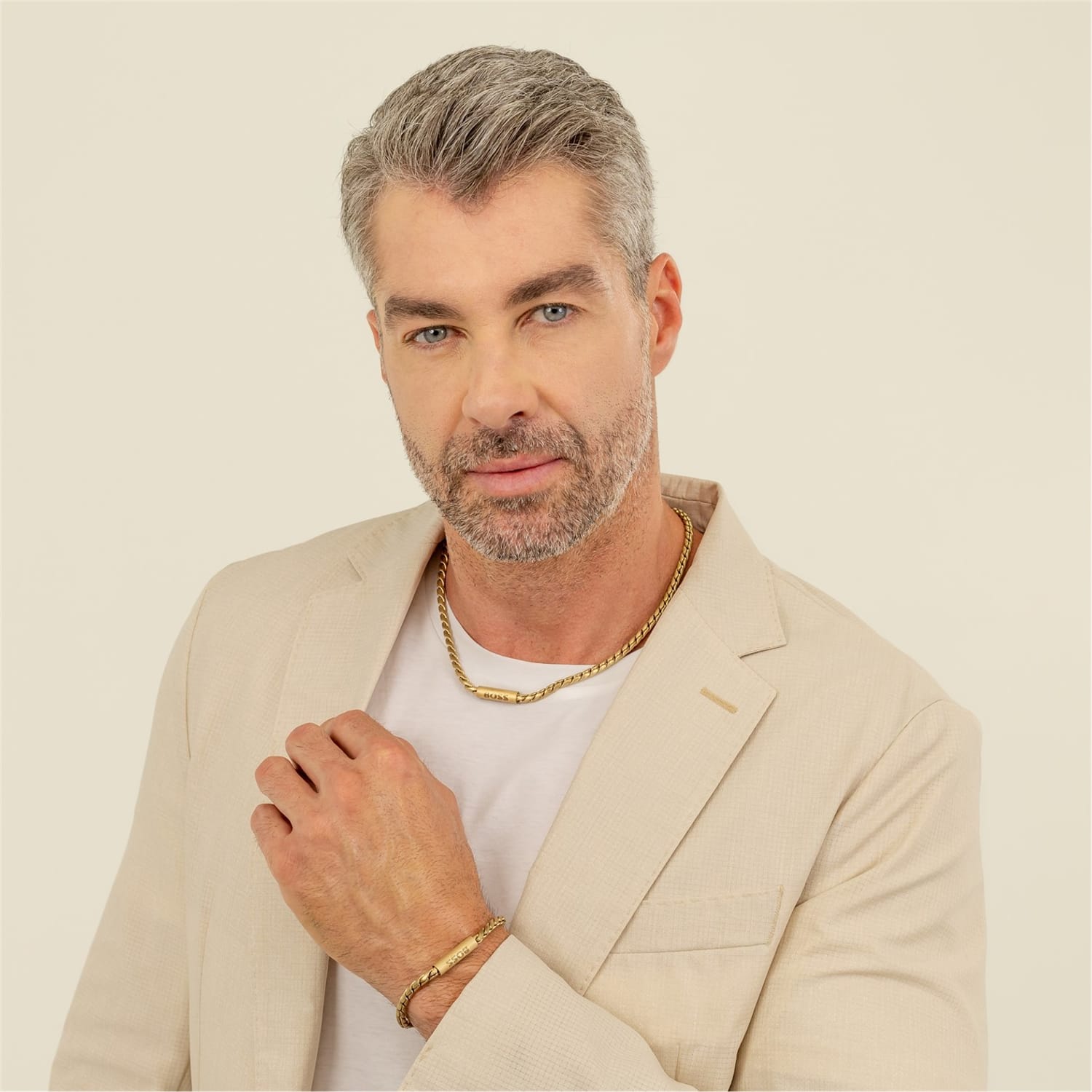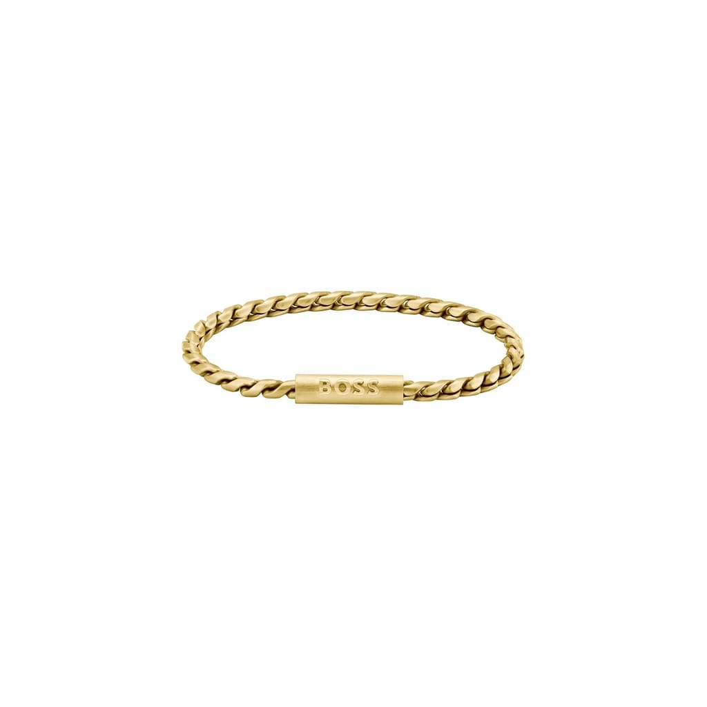BOSS gents bracelet from the Doran collection. Featuring a stainless steel braided metal link bracelet with BOSS branded magnetic closure. Length 180 - 190 mm