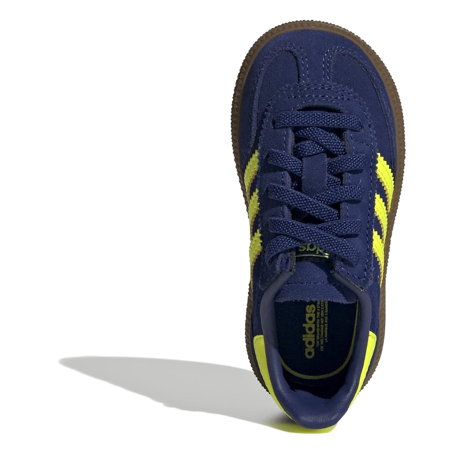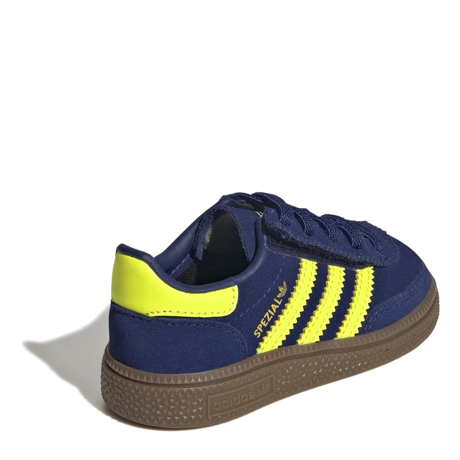 Bring the heritage style of adidas Originals to the littlest creators with these adidas Handball Spezial Shoes for babies. Super bendy for tiny feet, they have a soft, supple suede upper that's comfy and holds up to daily wear. Elastic laces let the collar stretch open, giving you an assist when slipping them on and off. Tap into the authentic vibe of vintage adidas, and give your baby a reason to smile.