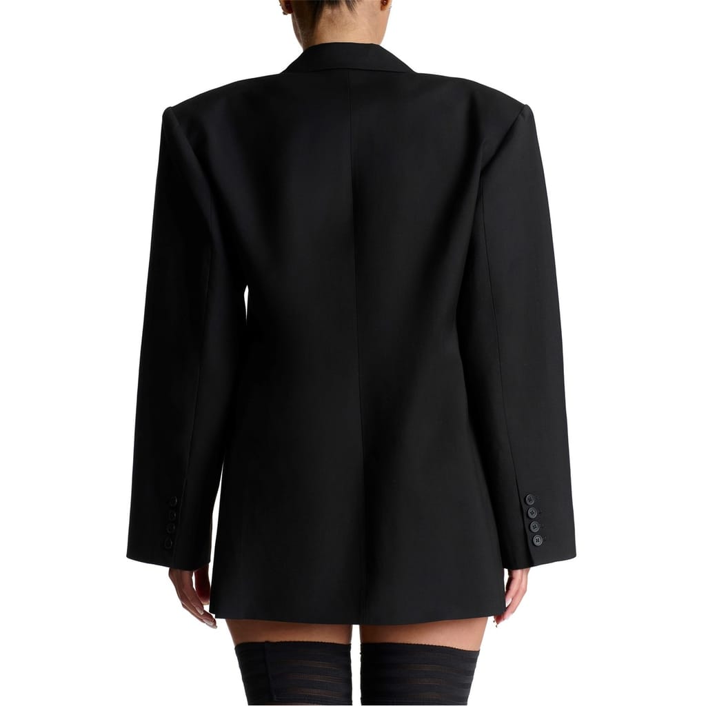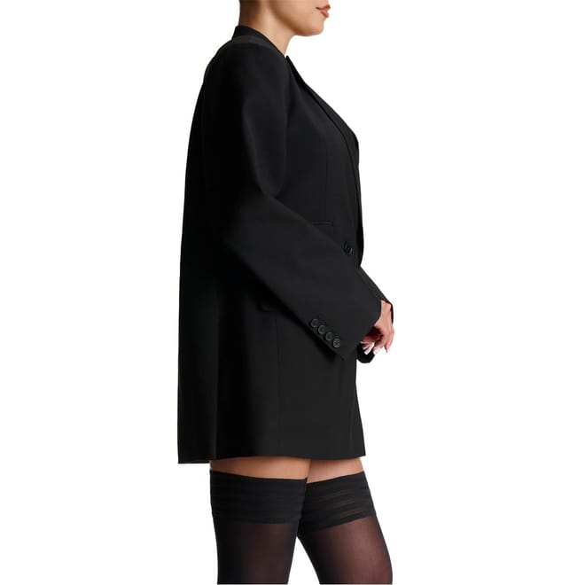 Elevate your wardrobe with Naked Wardrobe’s classic Boyfriend Suited Blazer, featuring an oversized fit, relaxed long sleeves, and a sharp notched collar with lapels. Detailed with functional multi-pockets and multi-button closures, it’s effortlessly stylish. Wear it as a dress with pantyhose or paired with leggings and heels. Perfect for chic office looks, evening events, or weekend outings.